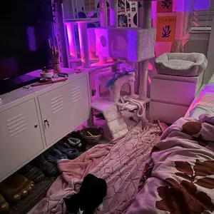when i was building this my cat was trying to climb it so i knew he would be all over it… he absolutely loves it😭 he’s so stinkin cute up there watching me do my makeup i love him sm