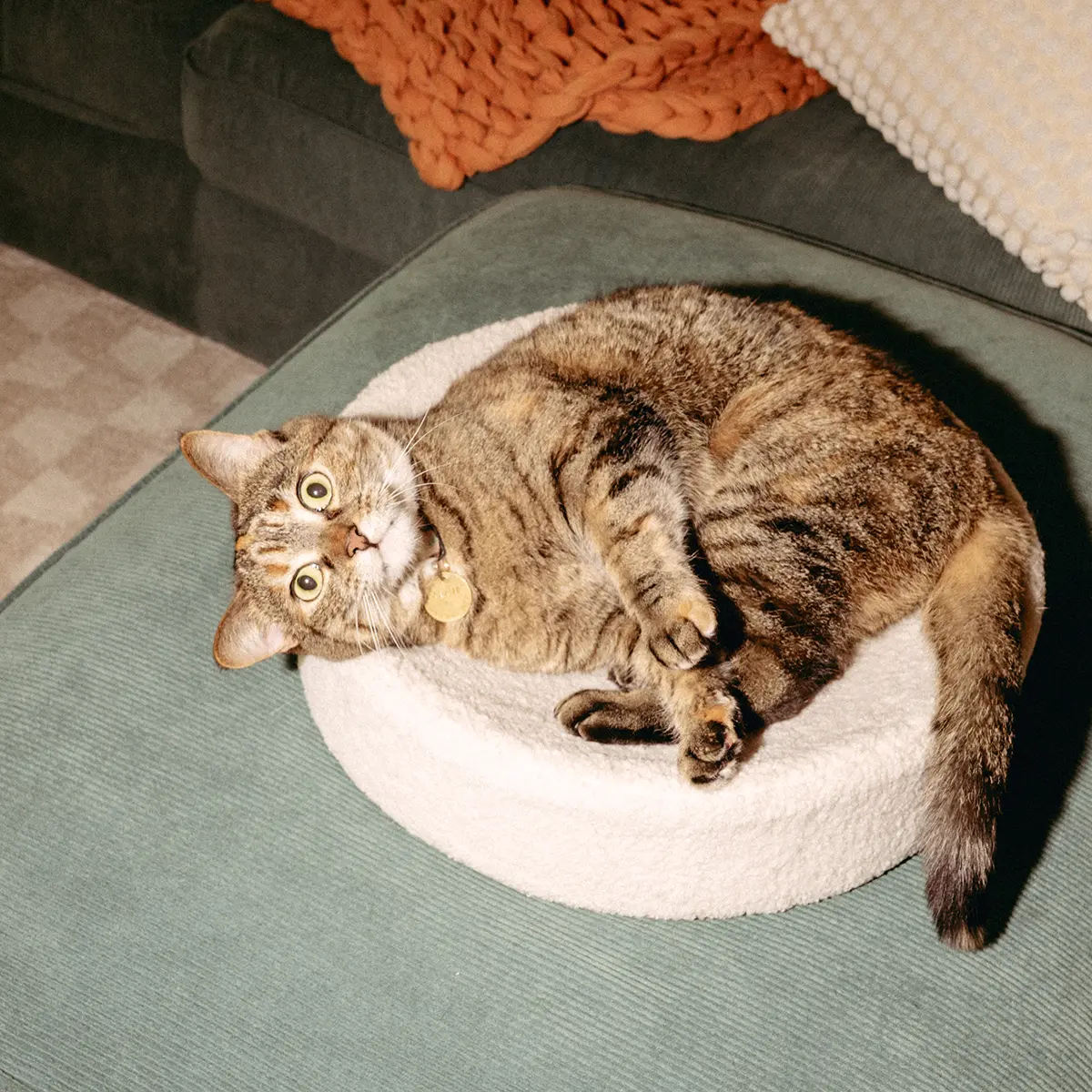 It is so nice to have finally found a cat bed that is beautifully designed, for both the human eye and for the comfort and appeal of the cat. My cat loves this bed, and its subtle clean design blends in well in my living room, unlike the majority of other cat furniture. Thank you for the thoughtful designs, Tuft and Paw!