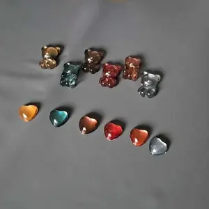 Beautiful colors! And great glassy cat eyes that aren't super glittery. The bears are over black and the hearts over white. Velvet effect.