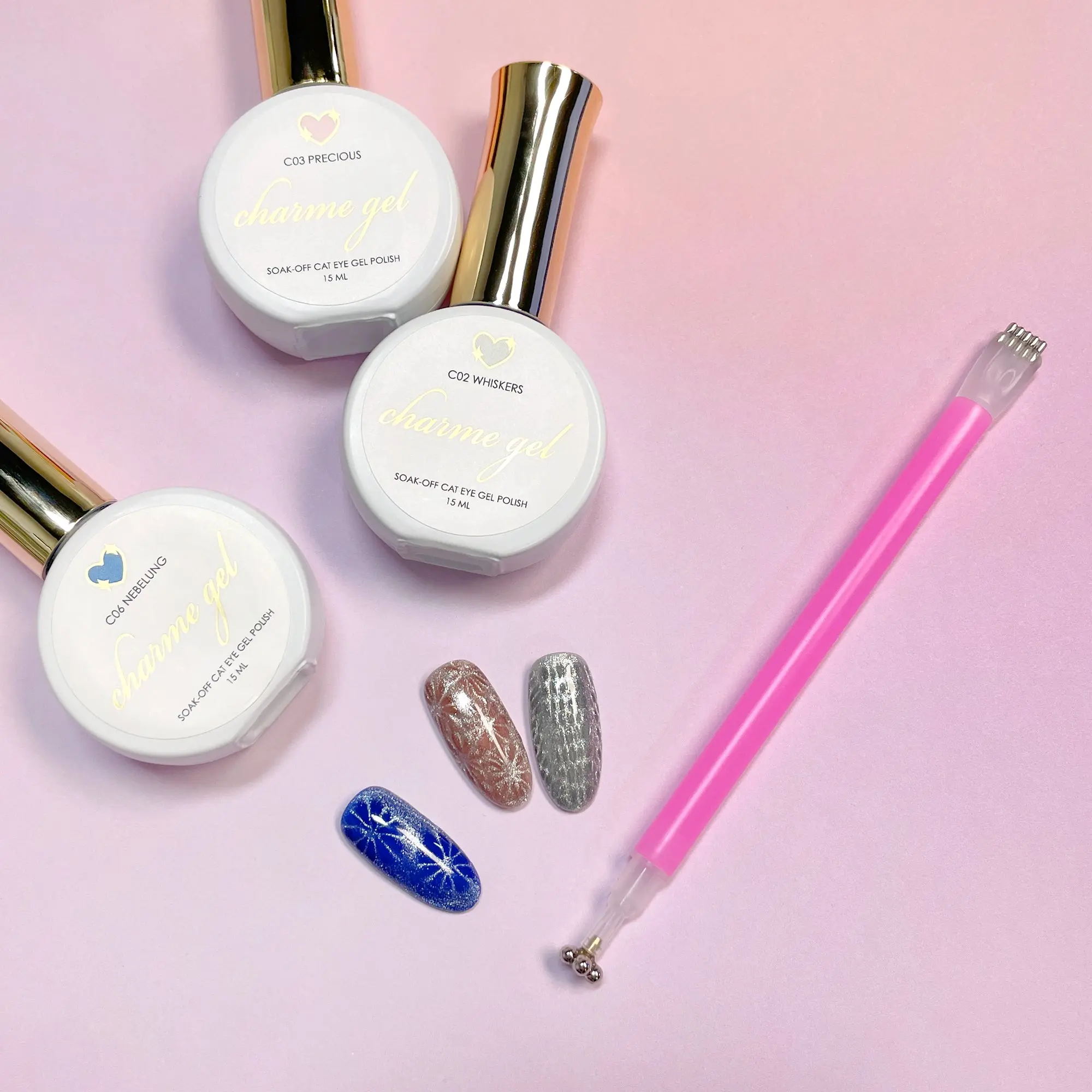 4. Double-Sided Flower & Stripe Cat Eye Nails Magnet Pen