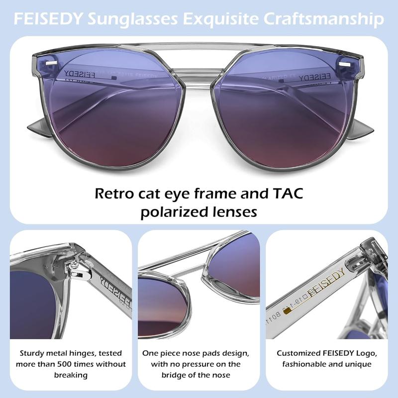·[Versatile and Stylish] - Whether you're outdoors, walking, driving, shopping, or capturing moments, these feisedy sunglasses are suitable for all occasions. They serve as a high-fashion accessory and can be worn year-round. Gift-ready, they make a wonderful and practical gift for friends and family.