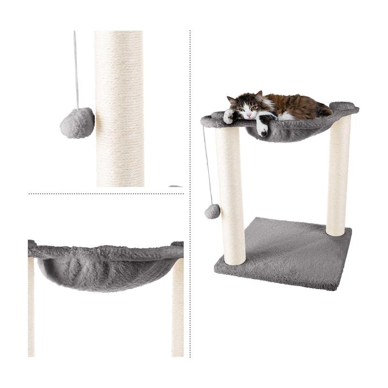 Give your feline friend the ultimate play and relaxation spot with the Petmaker cat hammock with scratching posts. This compact cat tree features sisal rope scratching posts, a hanging toy, and a cozy polyester bed, perfect for both large adult cats and kittens. From Petmaker.