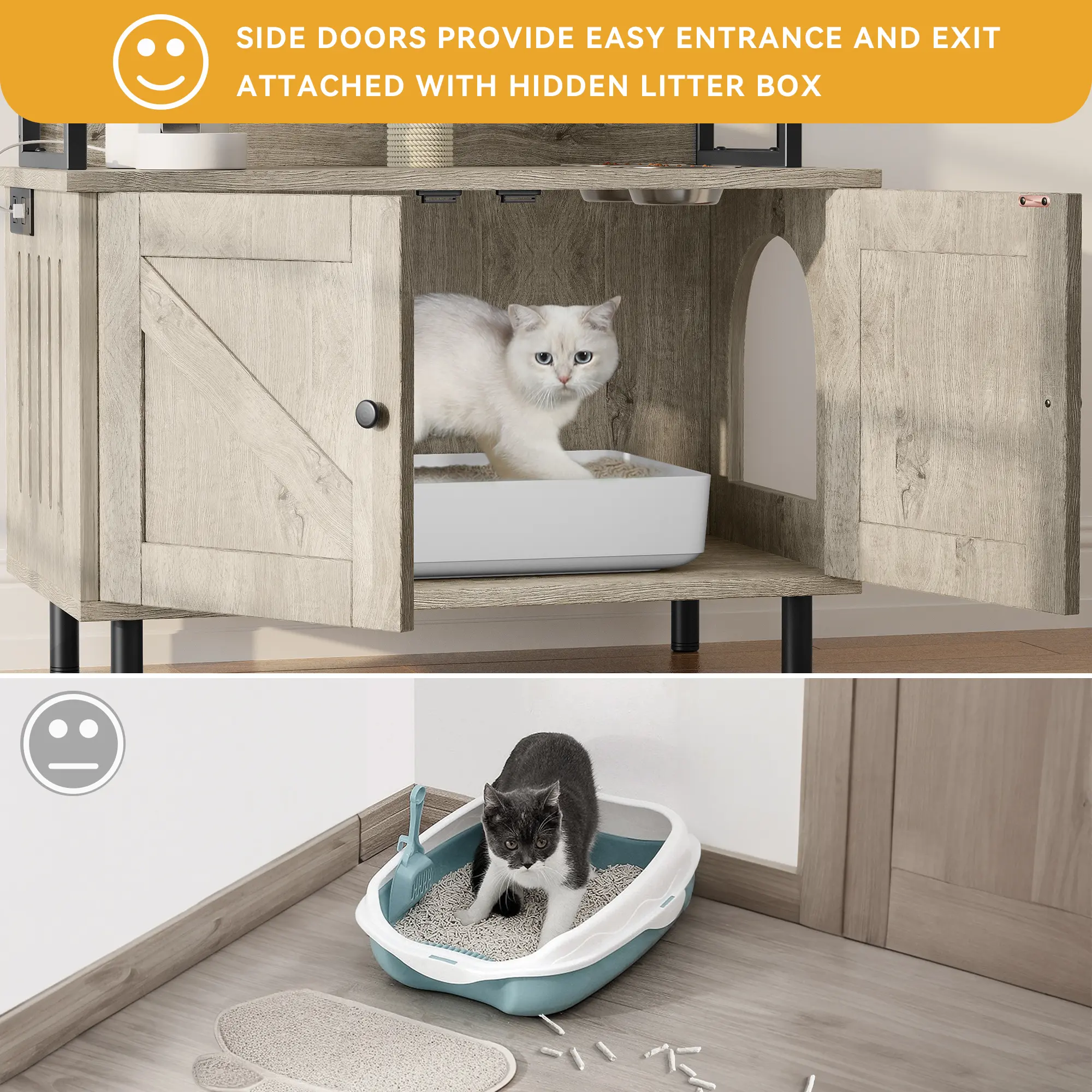Works perfect for my cats. Doesn’t keep scent completely away but better than having litter box out in the open!