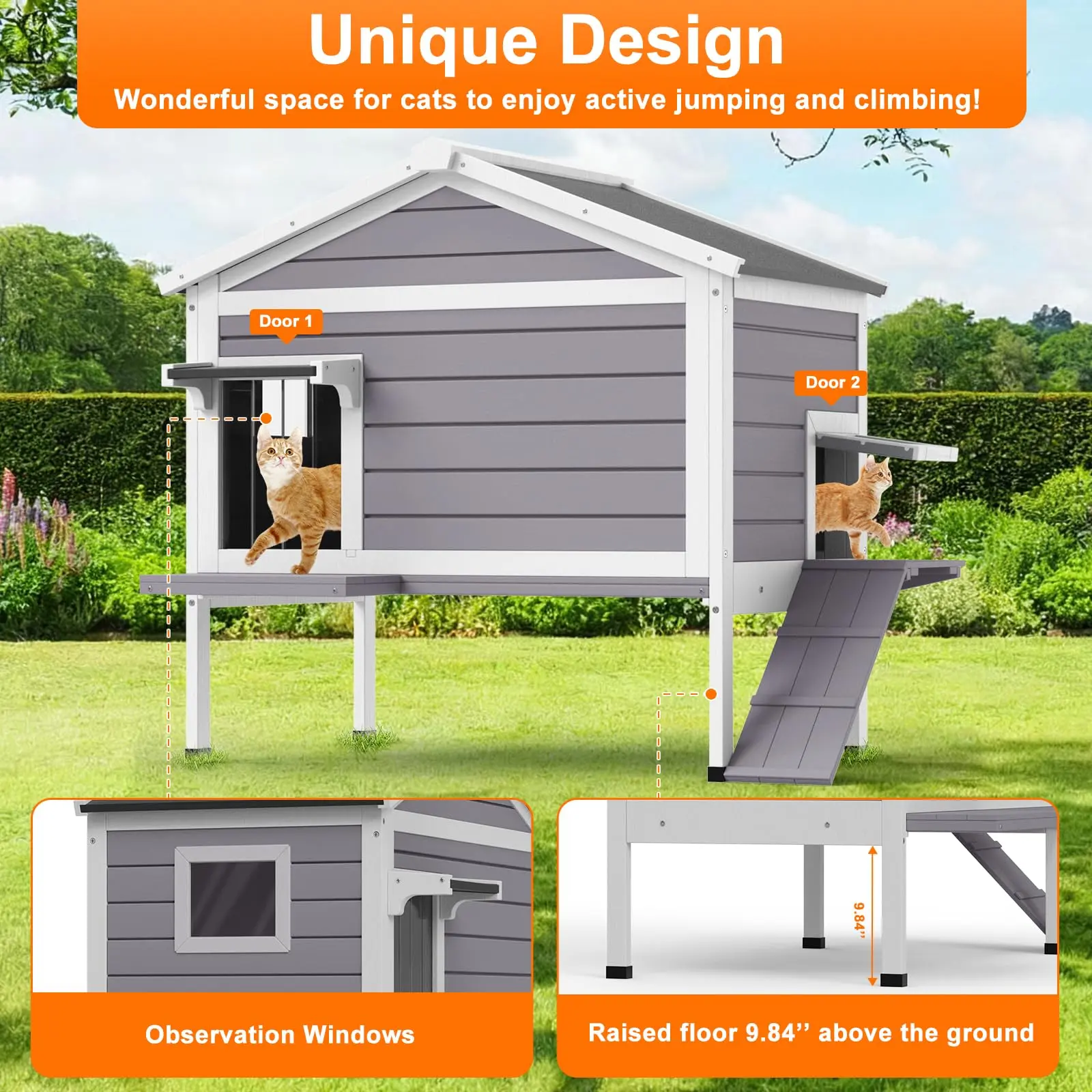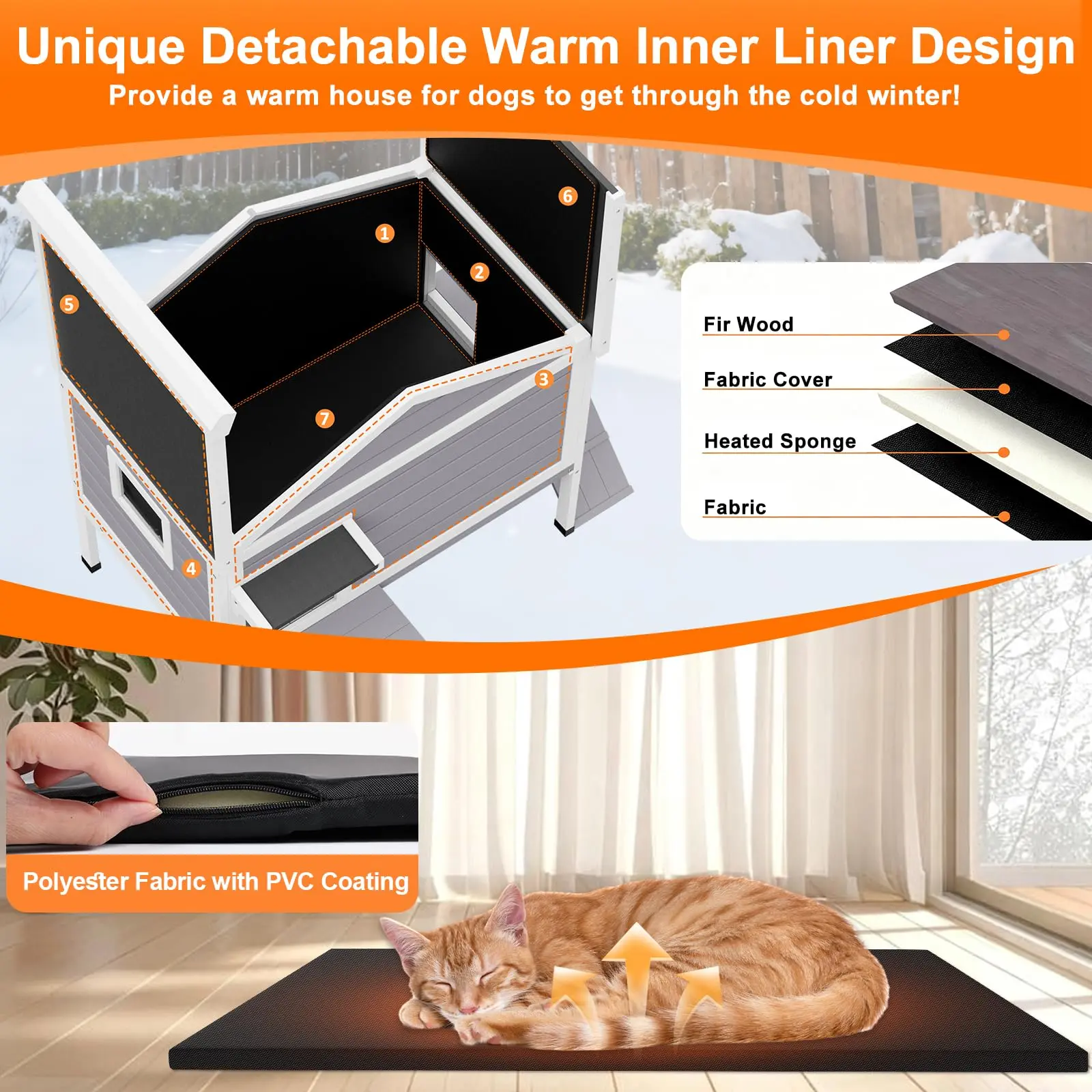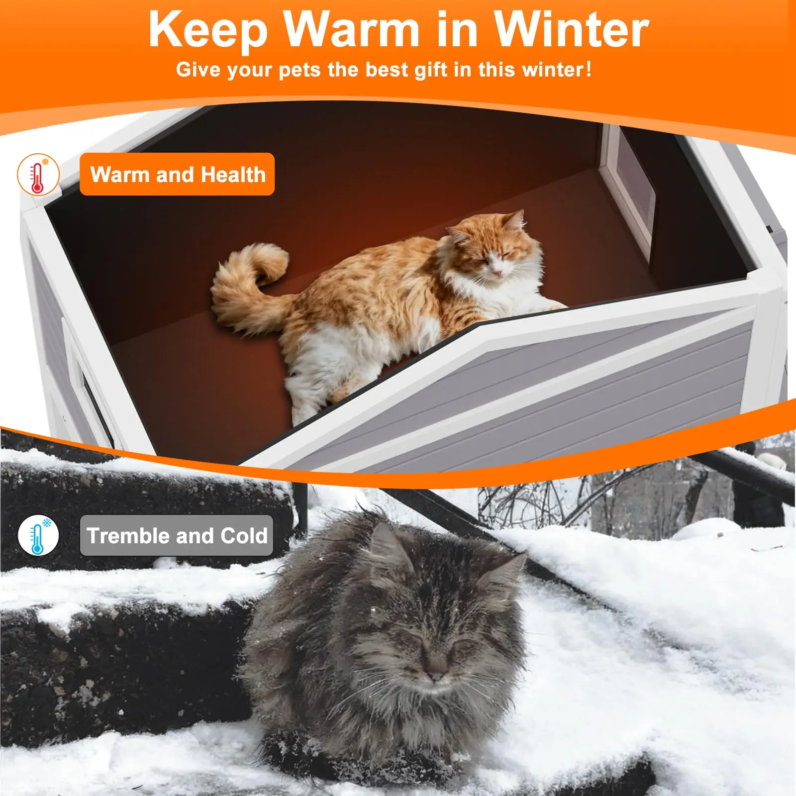 ·All-Season Sanctuary – Features a removable insulated liner for customizable winter warmth and a weatherproof, elevated design that keeps cats dry and insulated from cold, damp ground all year round.