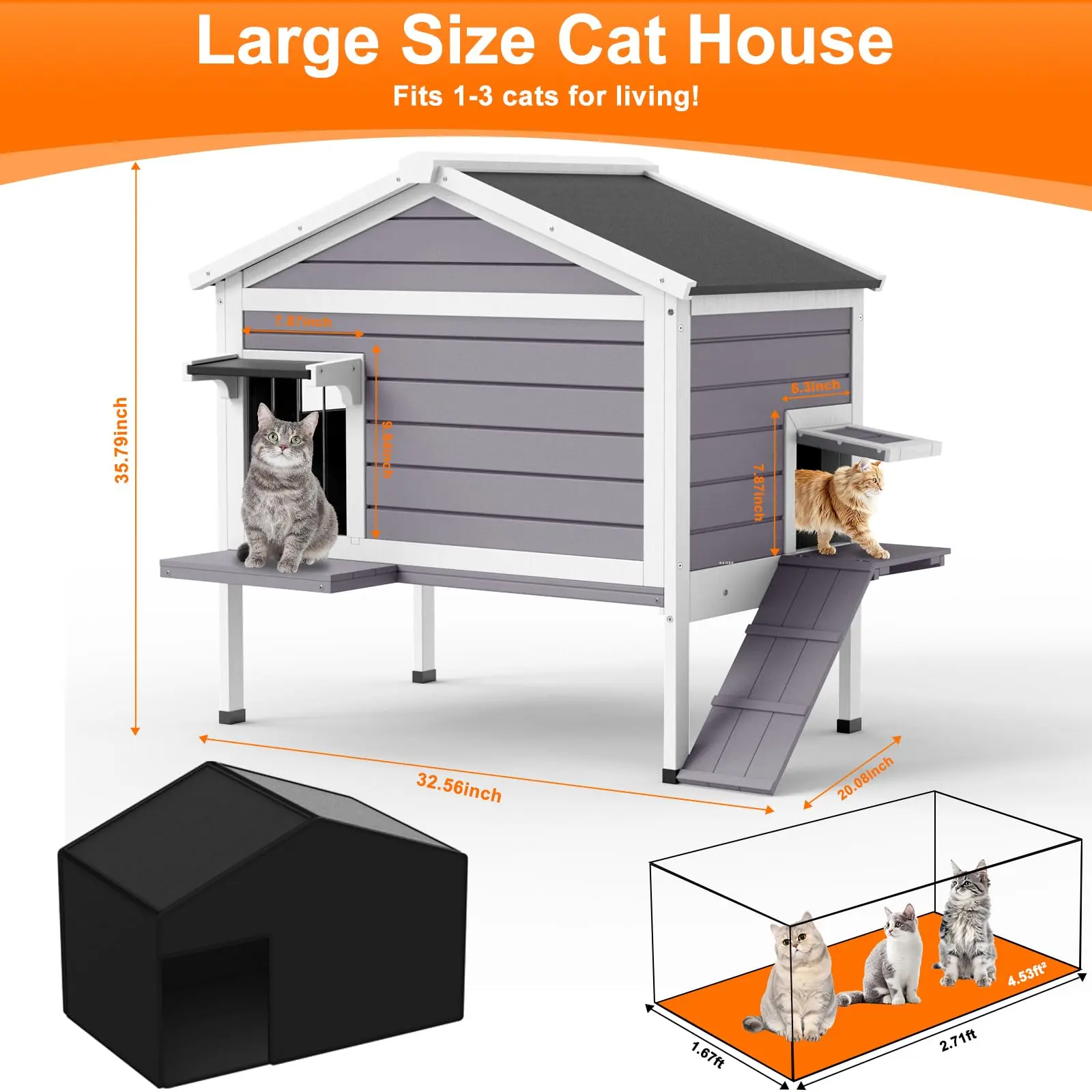 ·Spacious & Secure Retreat – Generously accommodates 1-3 cats comfortably, providing a shared communal space or a luxurious private haven that promotes feelings of safety and well-being.