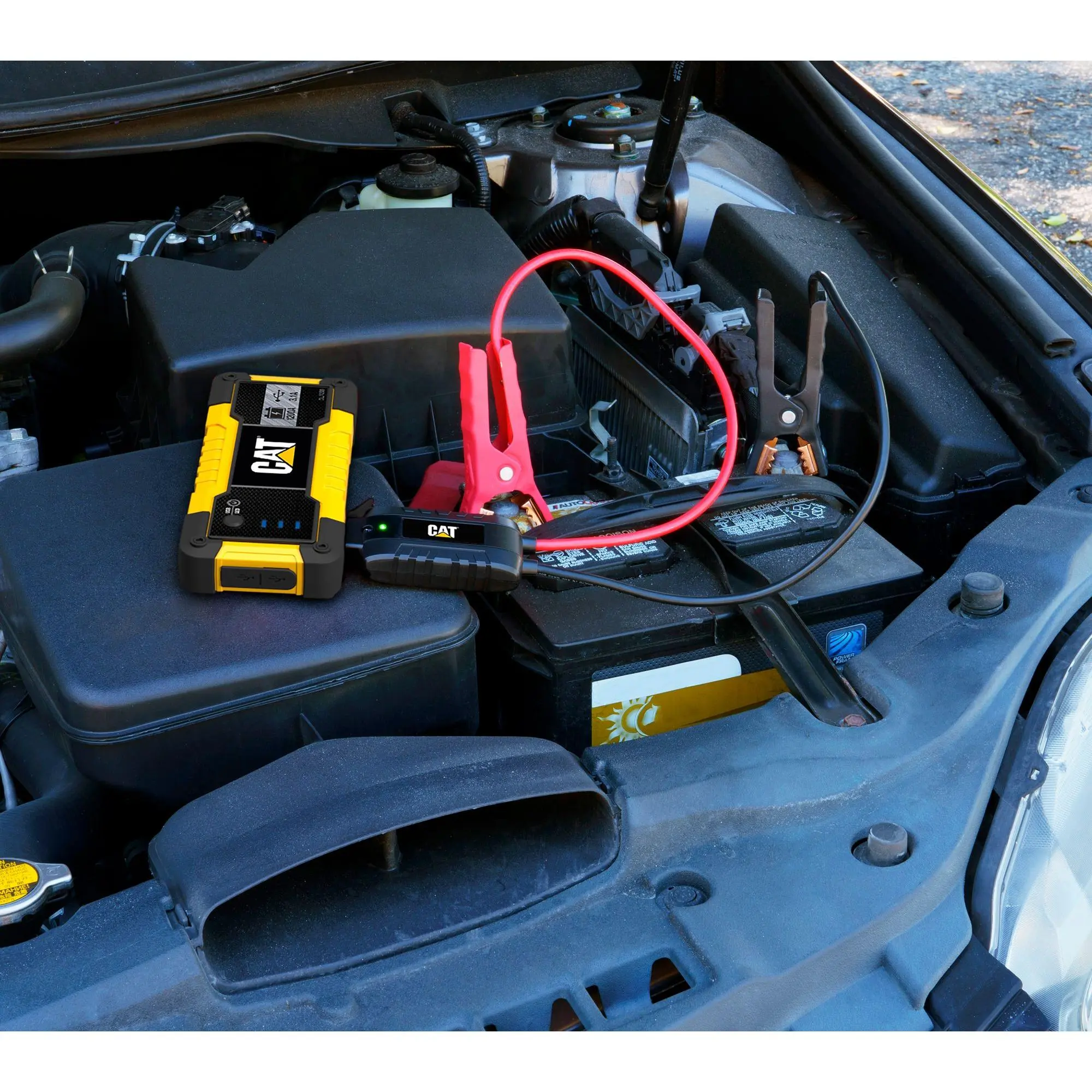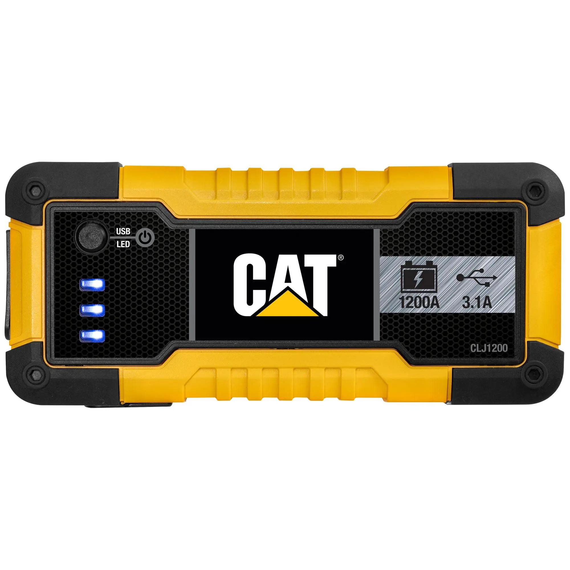 Compact and convenient, the CAT CLJ1200 jump starter provides 1200 peak amps of starting power to help get your car and truck moving again. Plus, it also includes two USB ports to give your laptops, cell phones, and other devices a battery boost. From CAT.