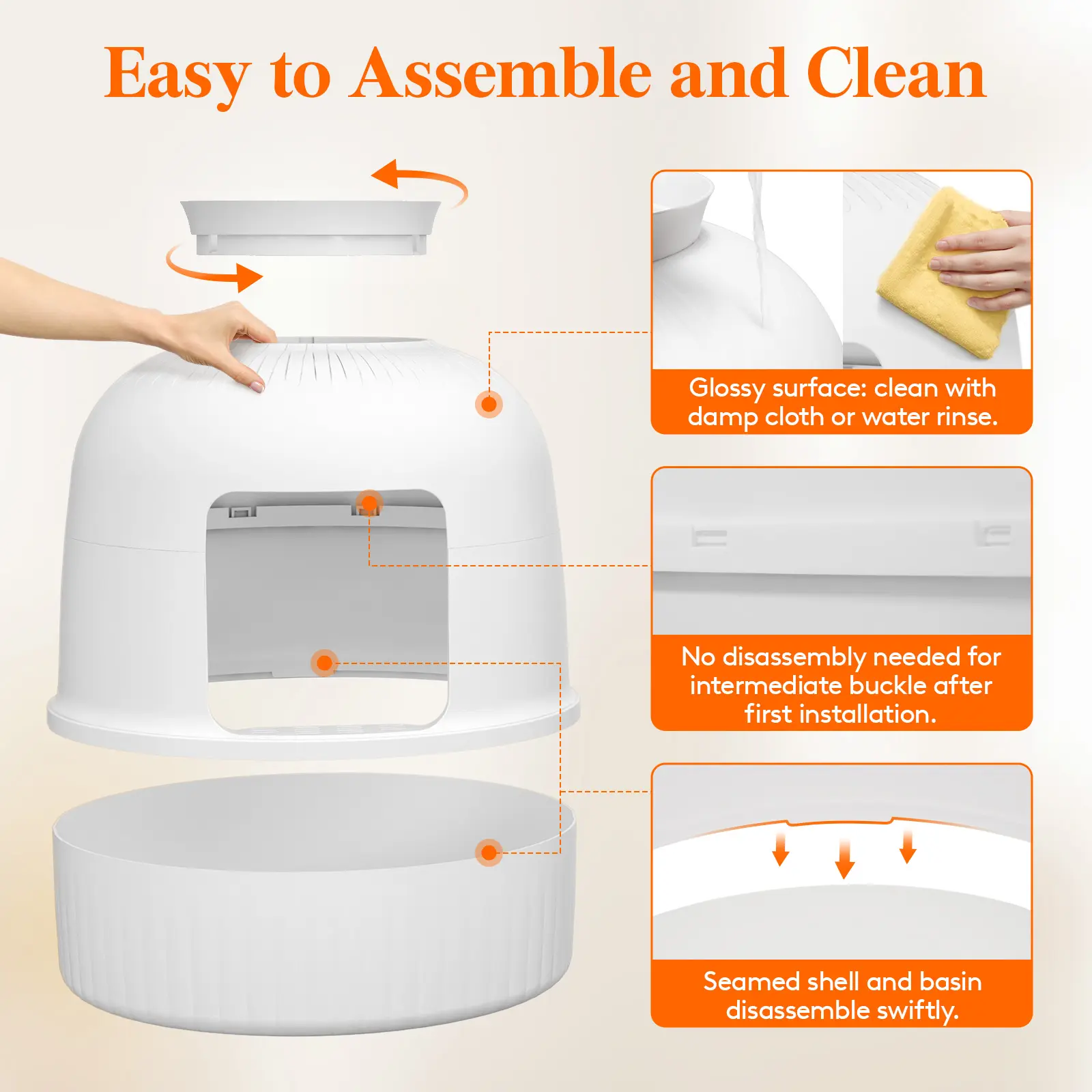 i got this in white and i love it! bigger than i thought it would be, but not too big. it was hard to snap the two top pieces together, which make the top half of the litter box; but when you get them secured, it feels very durable.