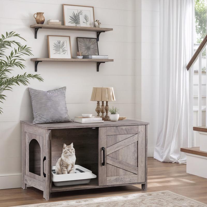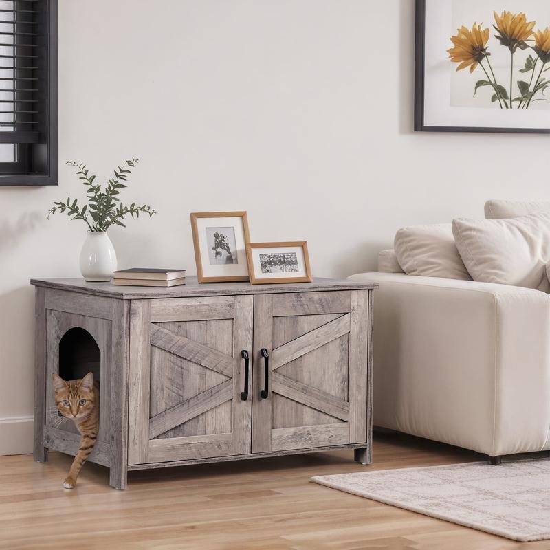 The unique barn door design adds a rustic charm and provides privacy for your cat. The door can be installed on the left or right side for added convenience.
