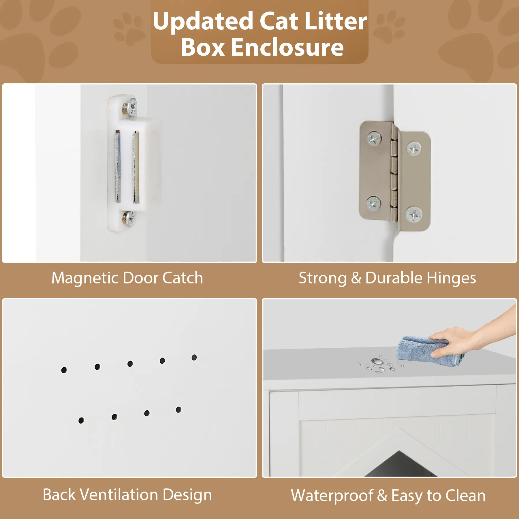 ·Great Design: Pre-cut holes in the back panels allow proper air flow to keep the inner dry and fresh. A wide magnetic door design is made for easy access and cleaning. It accommodates a Standard Size Litter Box.