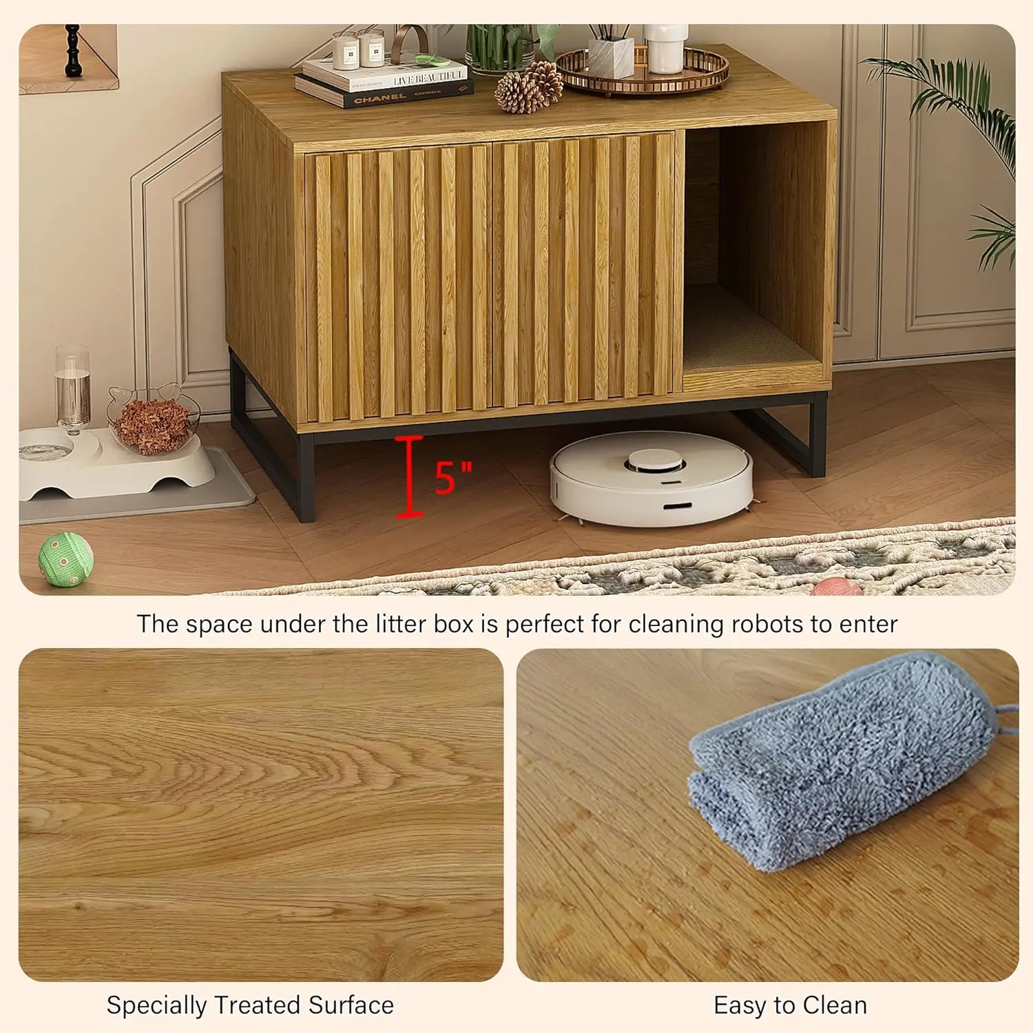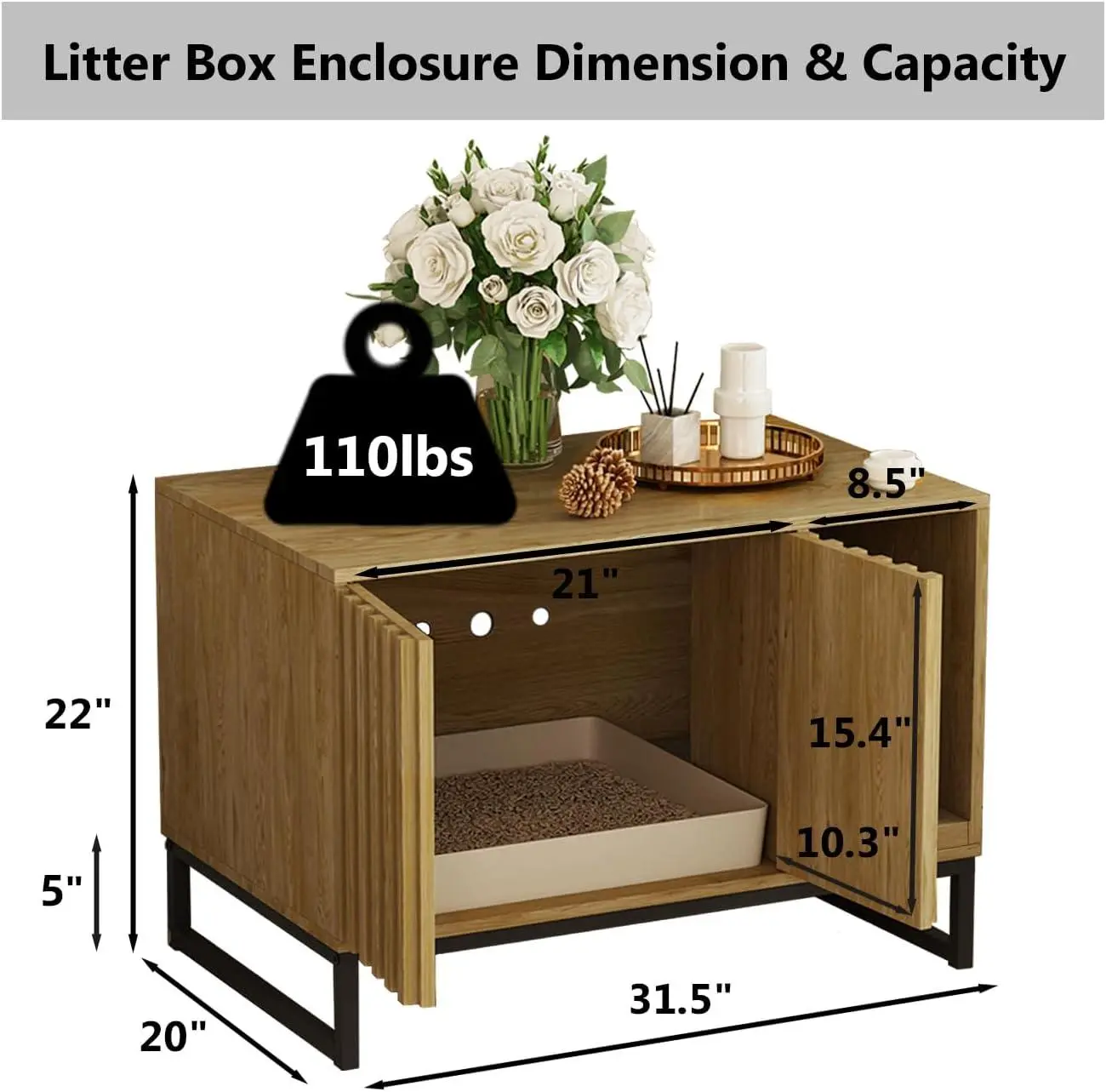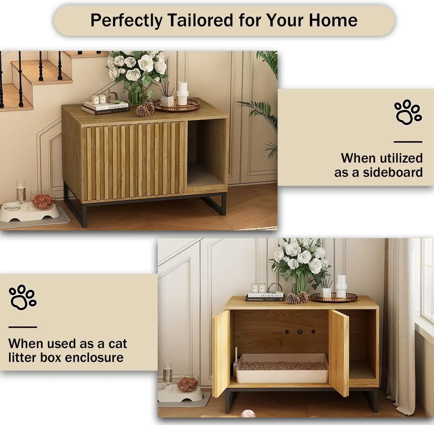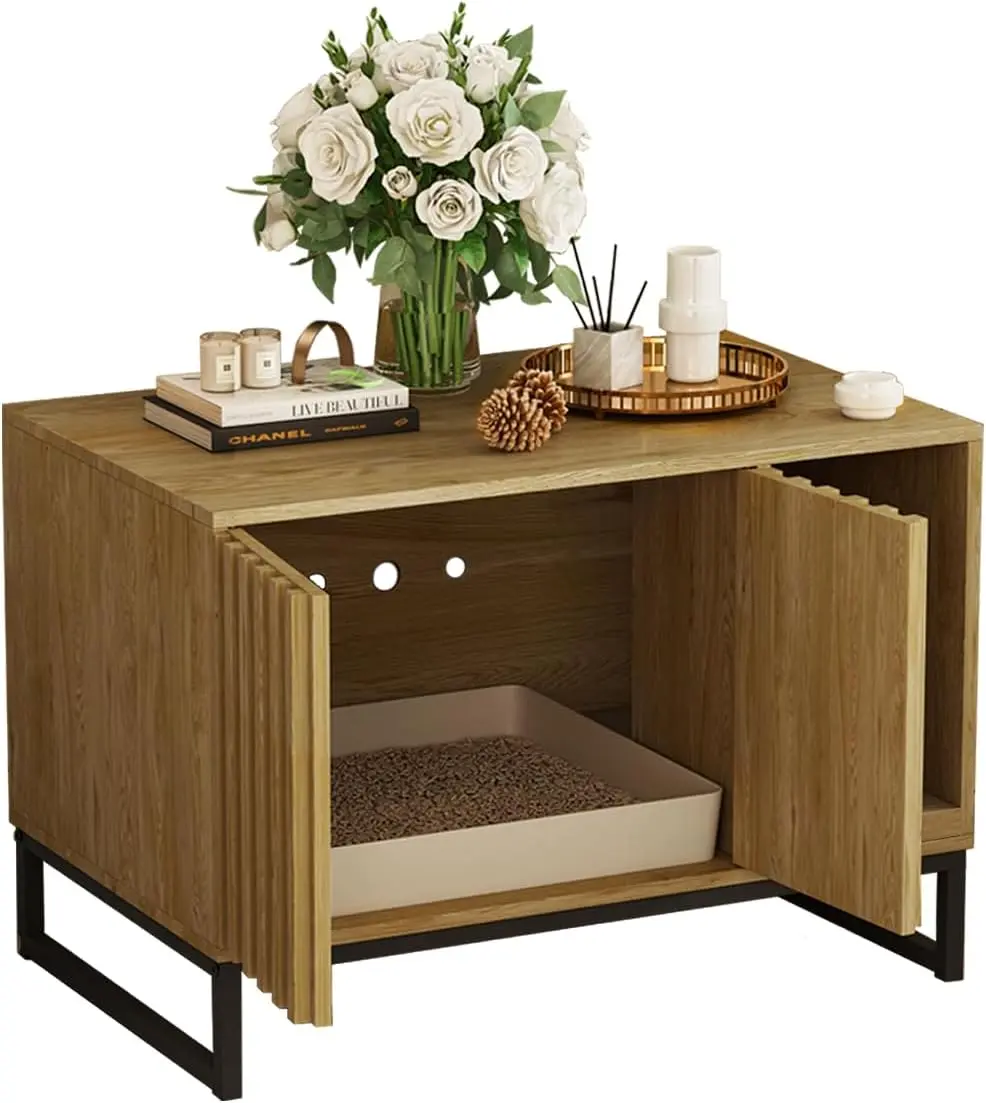 Versatile Cat Litter Box with Countertop: Our multi-functional cat enclosure litter box is designed with a spacious countertop, perfect for show casing potted plants, magazines, lamps, or your favorite collectibles. It's a versatile addition that can function as a pet house, end table, storage cabinet, or entryway bench, it's also the ideal spot for small pets to rest and play.