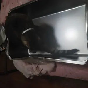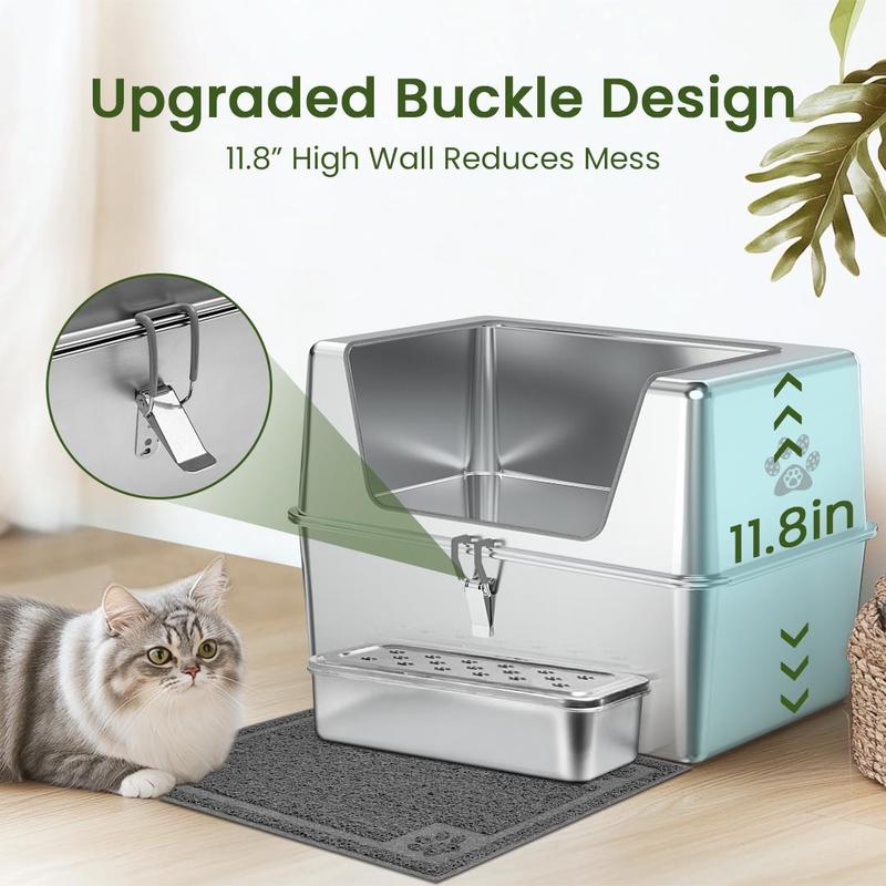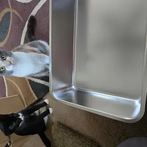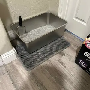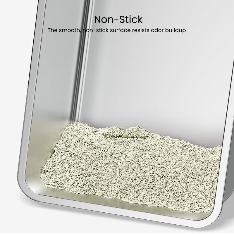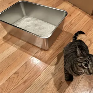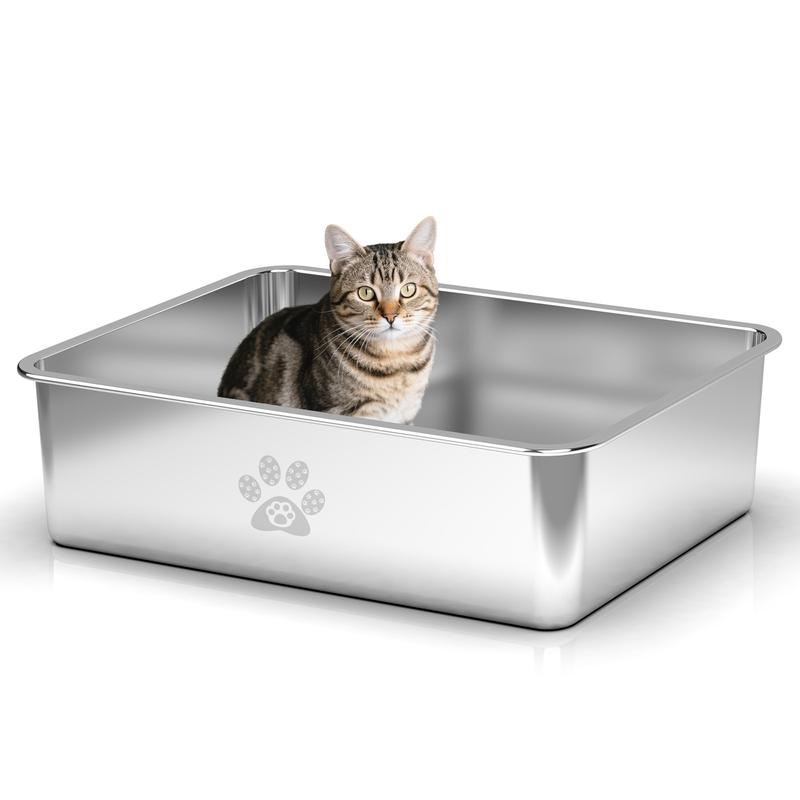 Nice big size for my cats. Don't forget to spray bottom with cooking spray (pet safe) so nothing sticks to the bottom. Glad I bought a stainless steel litter box. Cuts the smell down. So worth it.