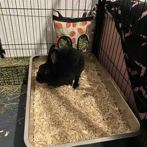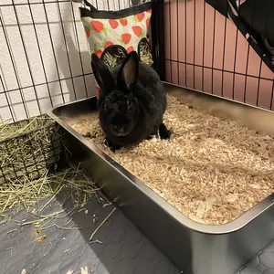 100/10 stars! Great product. This is so spacious and Tall for my 3 pound pet rabbit! She loves her litter box as it provides more space for her to turn around! I ordered size large! I use natural aspen bedding. Do not use cedar chips! Bad and toxic! Only natural aspen
