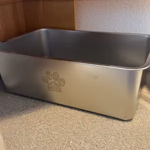 Love the solid one-piece design and how smooth the inside is. Easy clean up and has helped reduced the kitty litter smell.