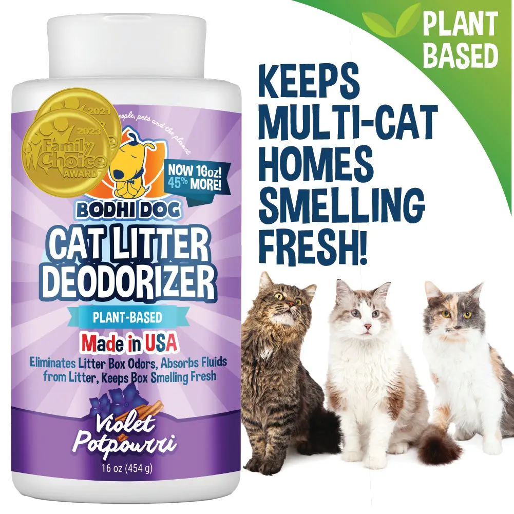 Bodhi Dog is a small, family-owned business based in Austin, Texas, and dedicated to creating safe, effective, and eco-conscious pet care products. Our Litter Deodorizer is proudly crafted in the USA using sustainable, cruelty-free practices and recyclable packaging. Our mission is to offer premium solutions to easily care for your furry family members.