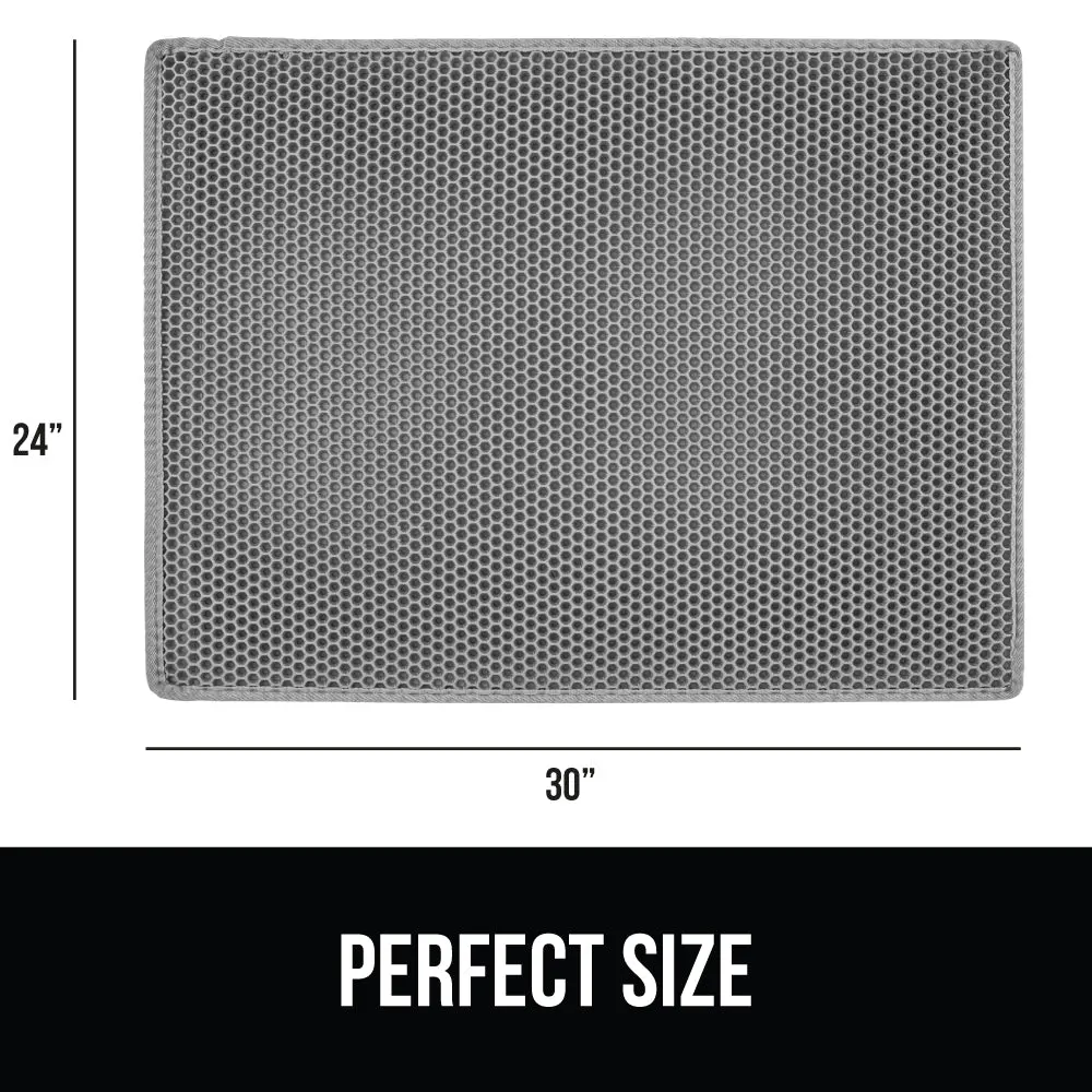 24"×15" is a decent size to cover litter box area. Catches litter well and discarding is easy too. Only concern is that the bottom layer is made of foam instead of plastic like I thought. Smell/durability may be a problem in the future. But otherwise gets the job done. Recommended for messy kitties