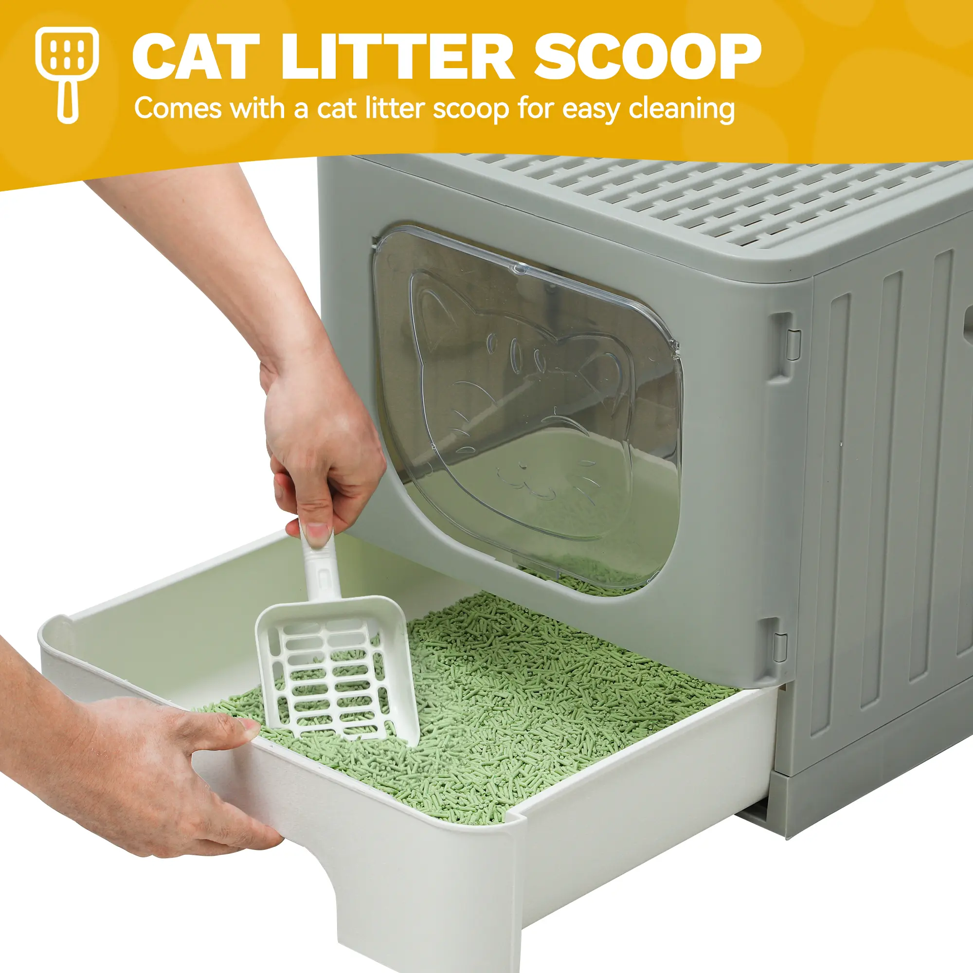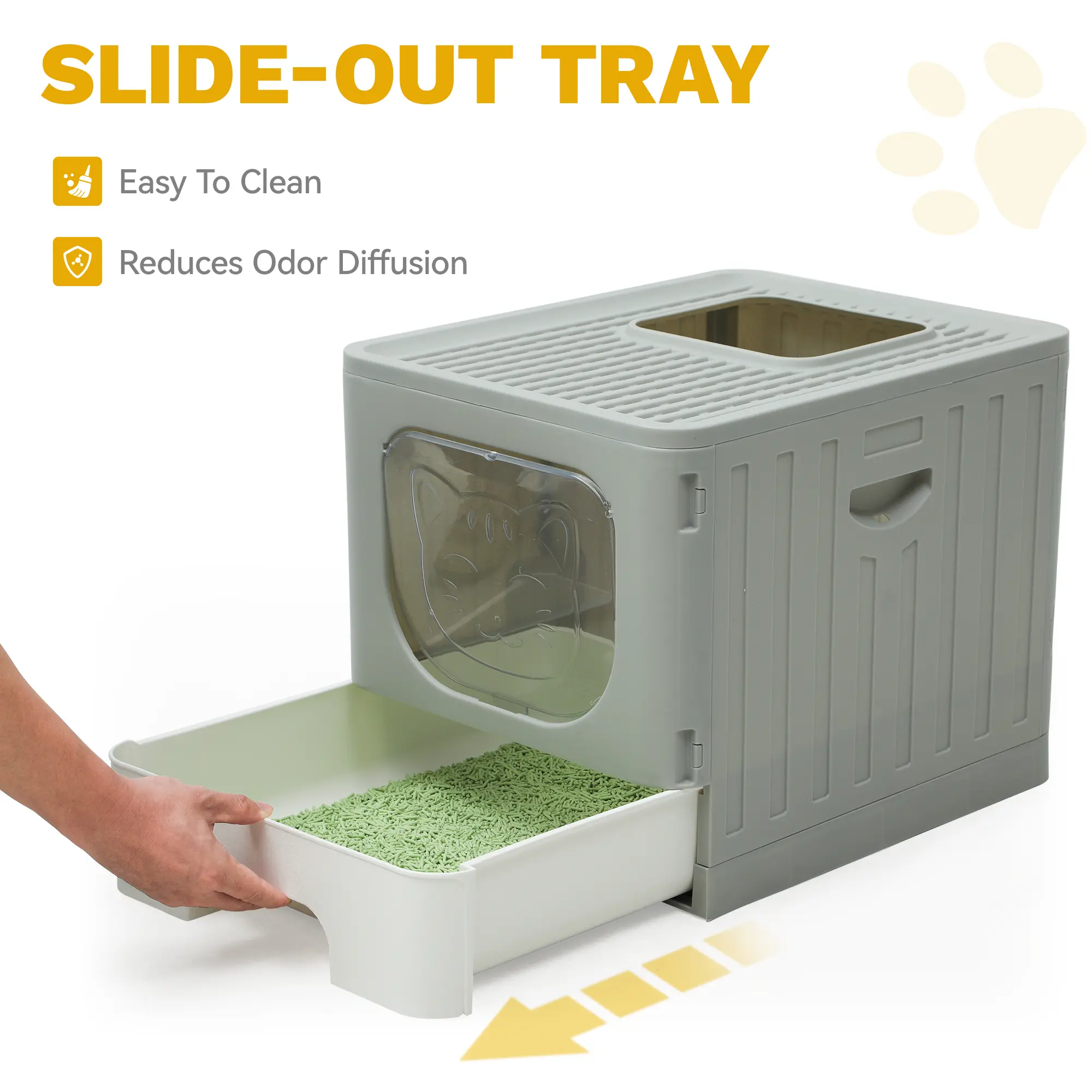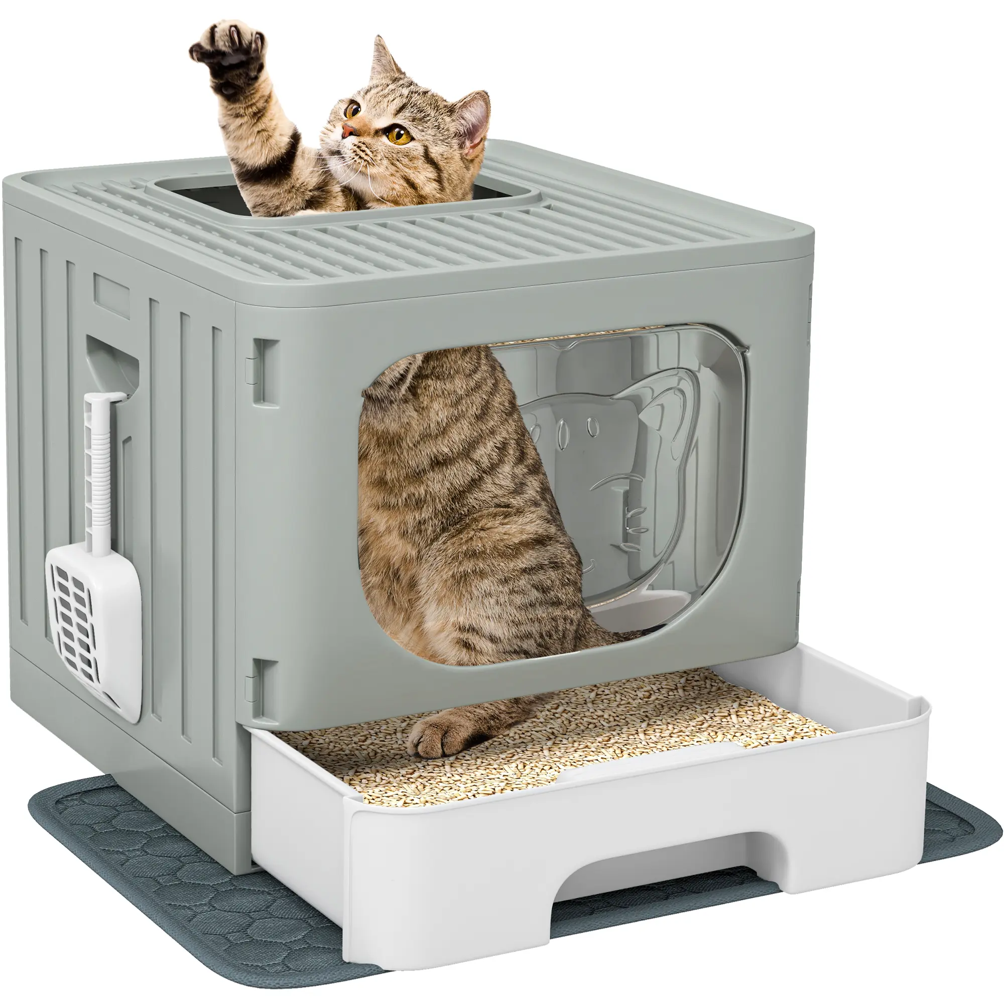 Itâs super cute! Wish the tray was a little deeper but my kitty had no problems with it. Only issue was the gray door, I wish it swung both ways but I needed up removing it anyways! Super cute and nice size.