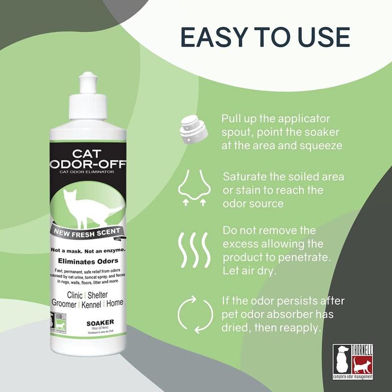 EASY TO USE: Pull up the applicator cap, point the soaker at the area, and squeeze. To reach the odor source, saturate the soiled area. Work in the pet odor neutralizer thoroughly as possible, then let it air dry. If the odor persists after pet odor absorber has dried, then reapply.