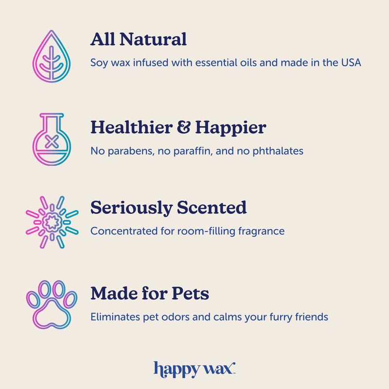 Say goodbye to pet odors and hello to tranquility with our pet wax melt collection. Our unique formula combines odor-eliminating technology with calming ingredients that mimic natural pheromones, creating a soothing environment for you and your pets. Get ready to breathe easy and enjoy a fresh, peaceful home.