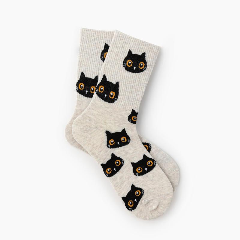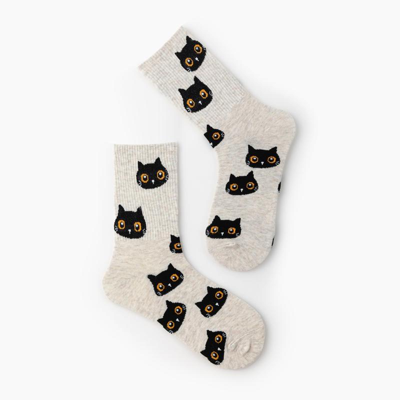 ·Cider Cat Pattern Crew Socks