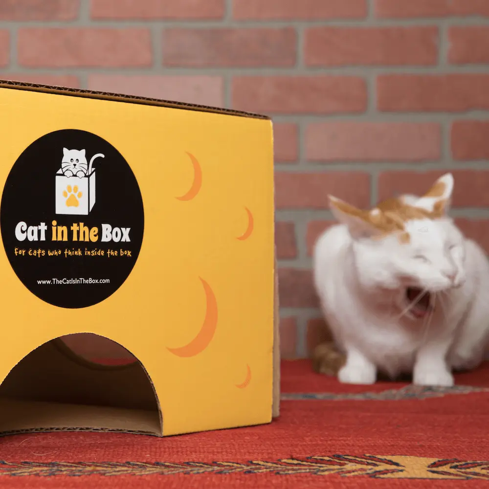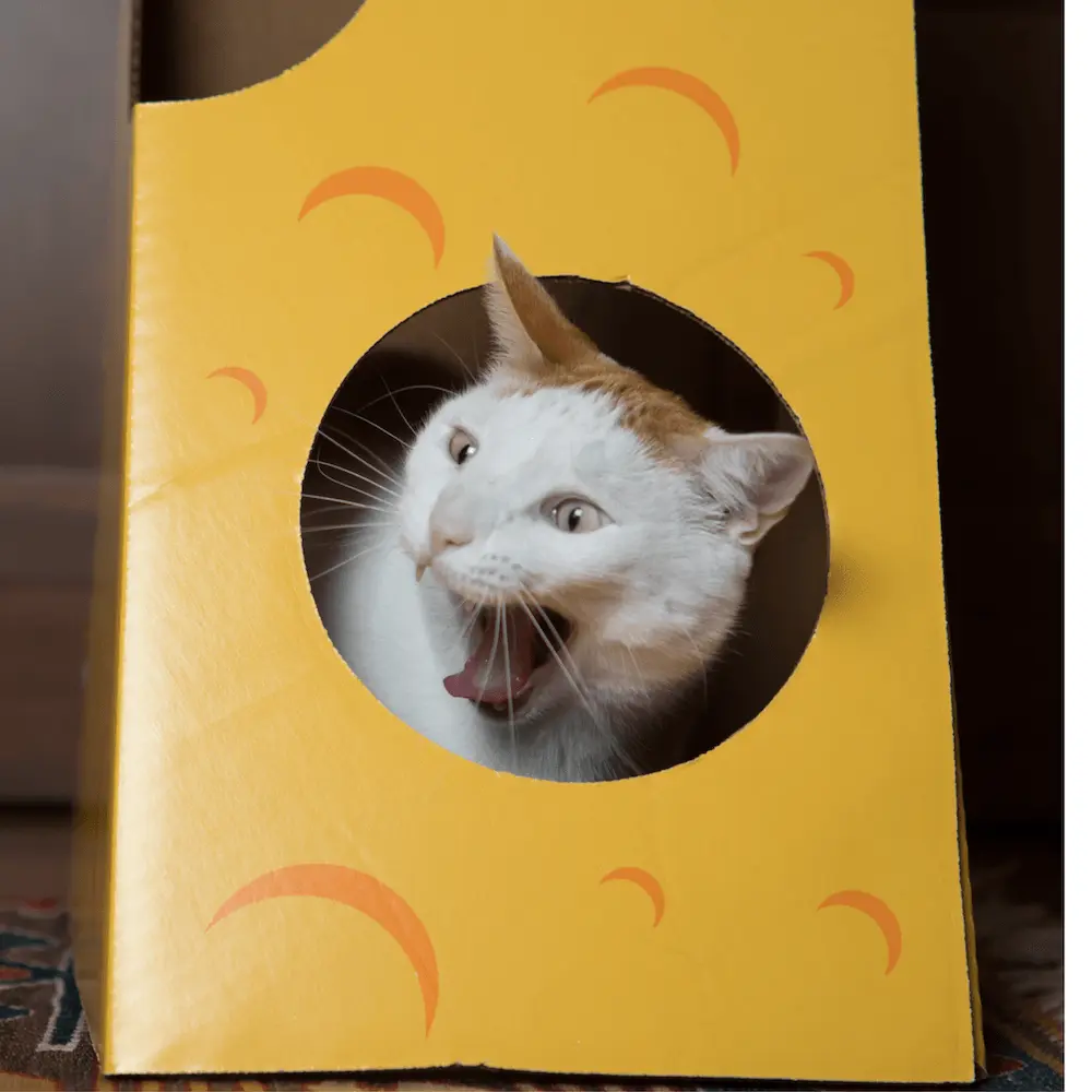 “Mr. Whiskers!” I shouted, and ran over to my laptop before he playfully tipped it off the couch. Just then, my screen bounced to life and I saw a sizeable wedge of cheese made of cardboard with holes punched out on a site called catisinthebox.com. The price was extremely reasonable given my recent failures. “Is this what you want?” I asked.