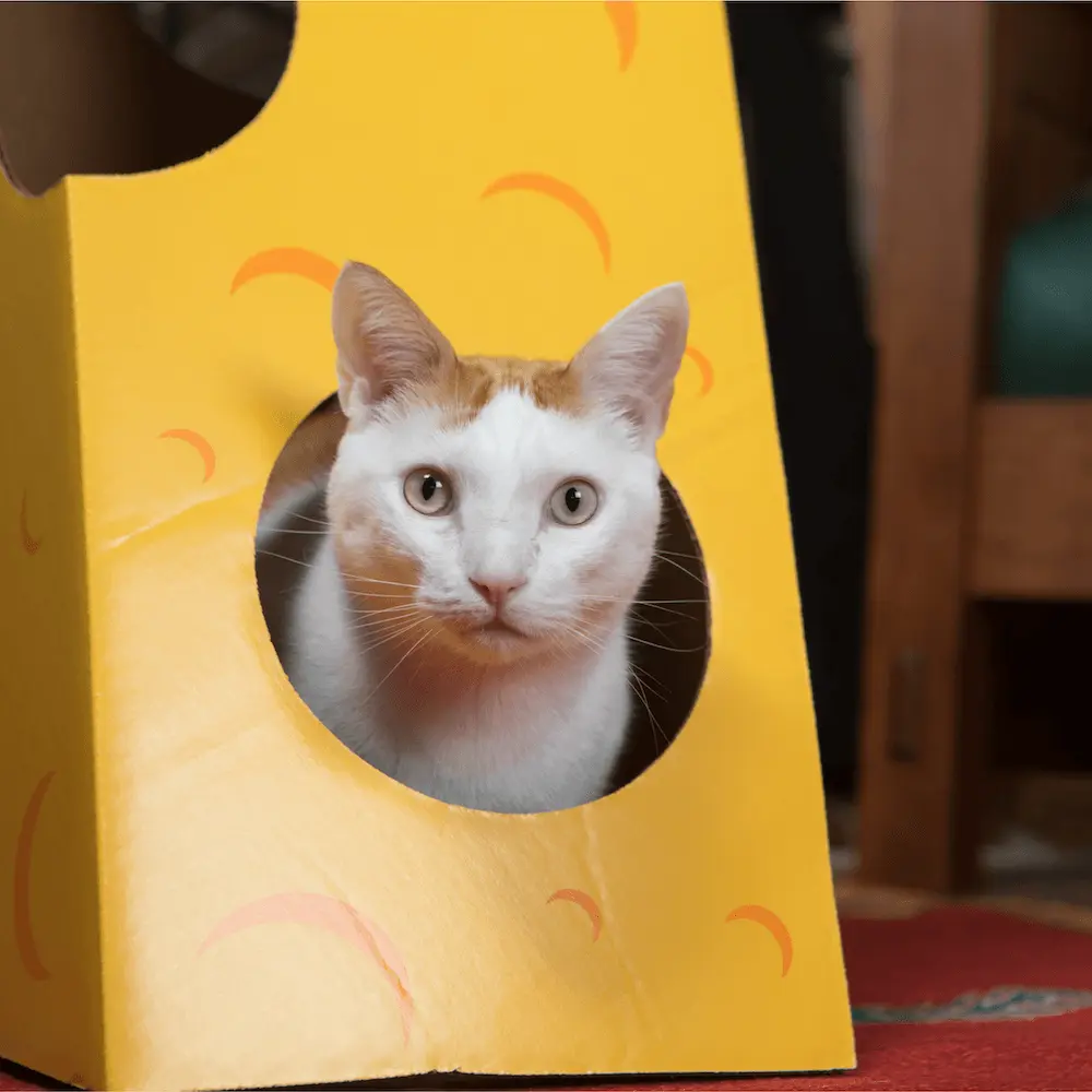 Giant Cheese Wedge Cardboard Cat House