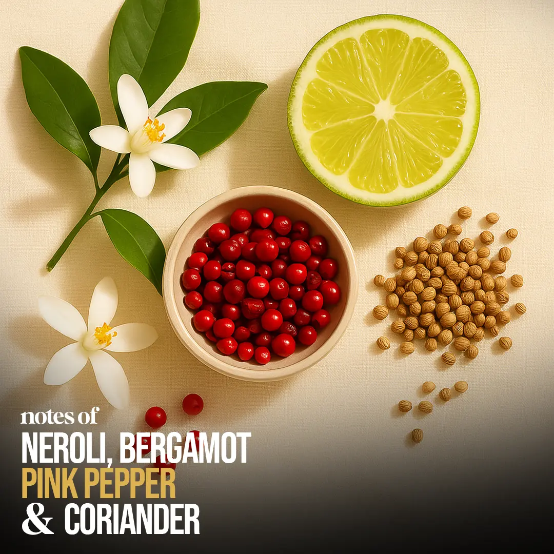 Top Notes: Neroli, Bergamot, Pink Pepper, Coriander