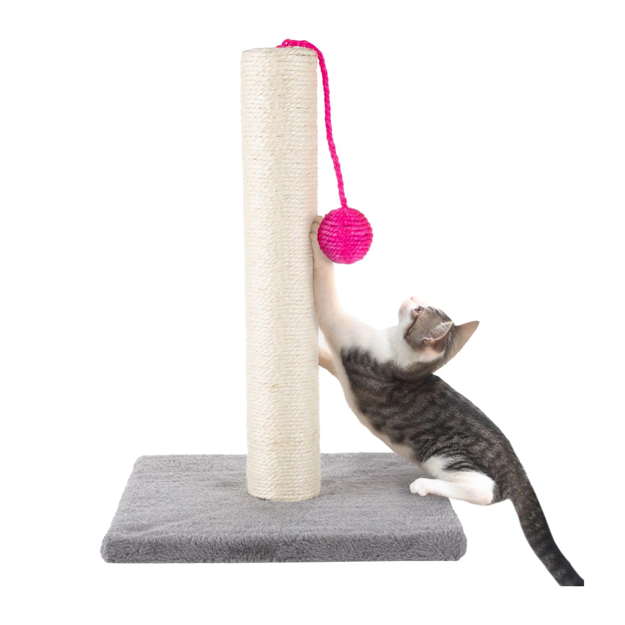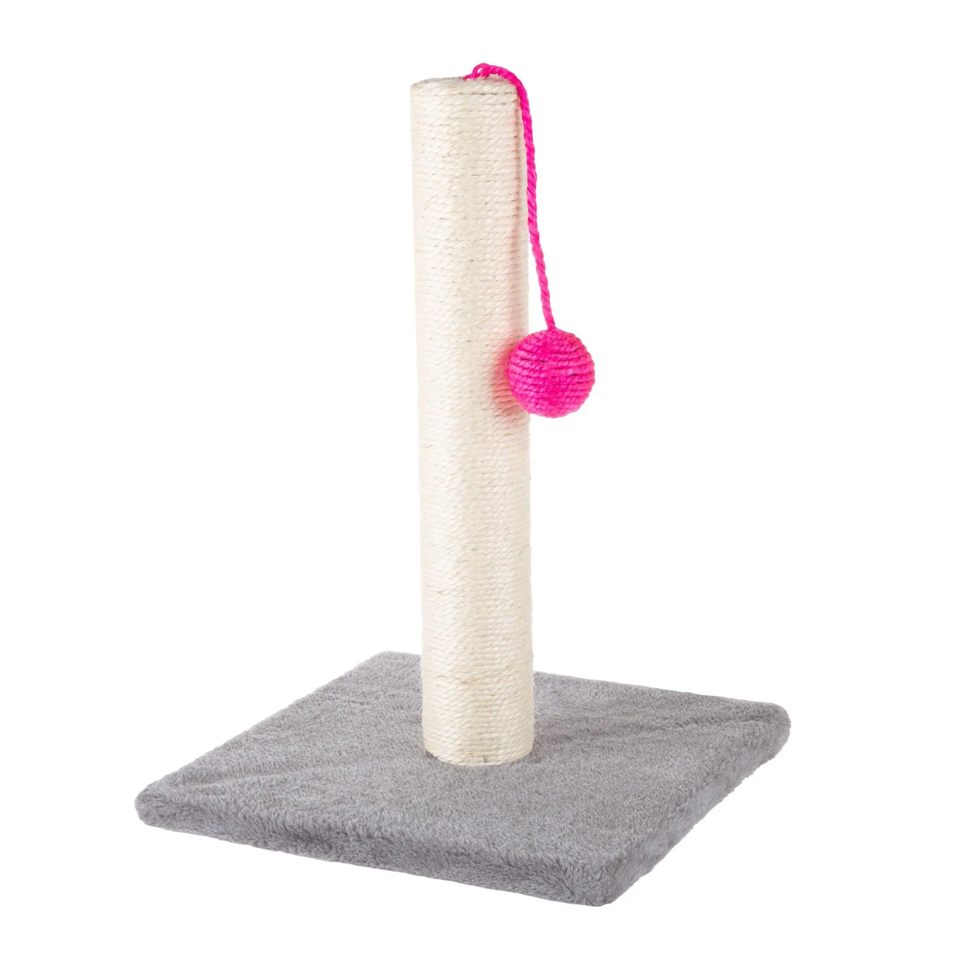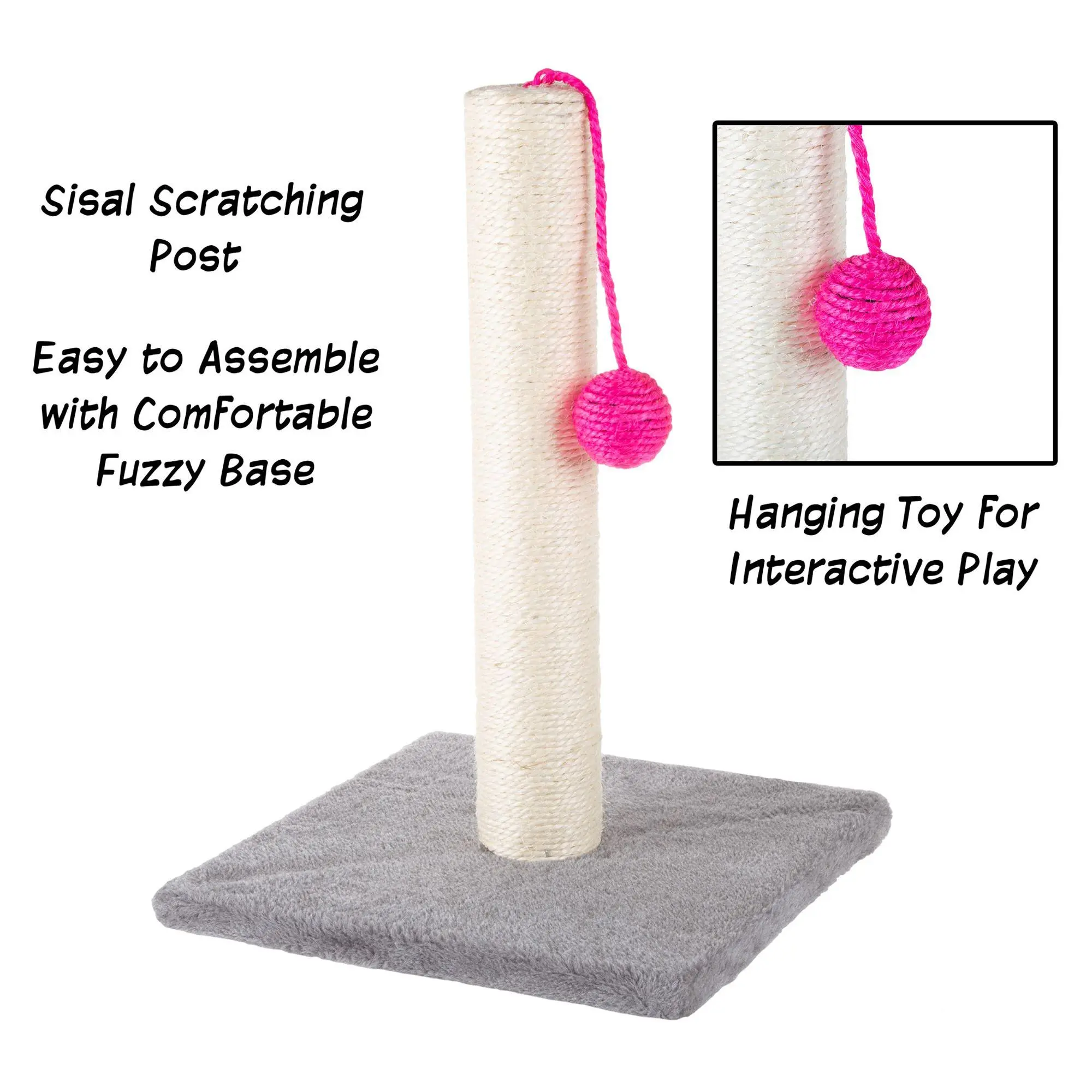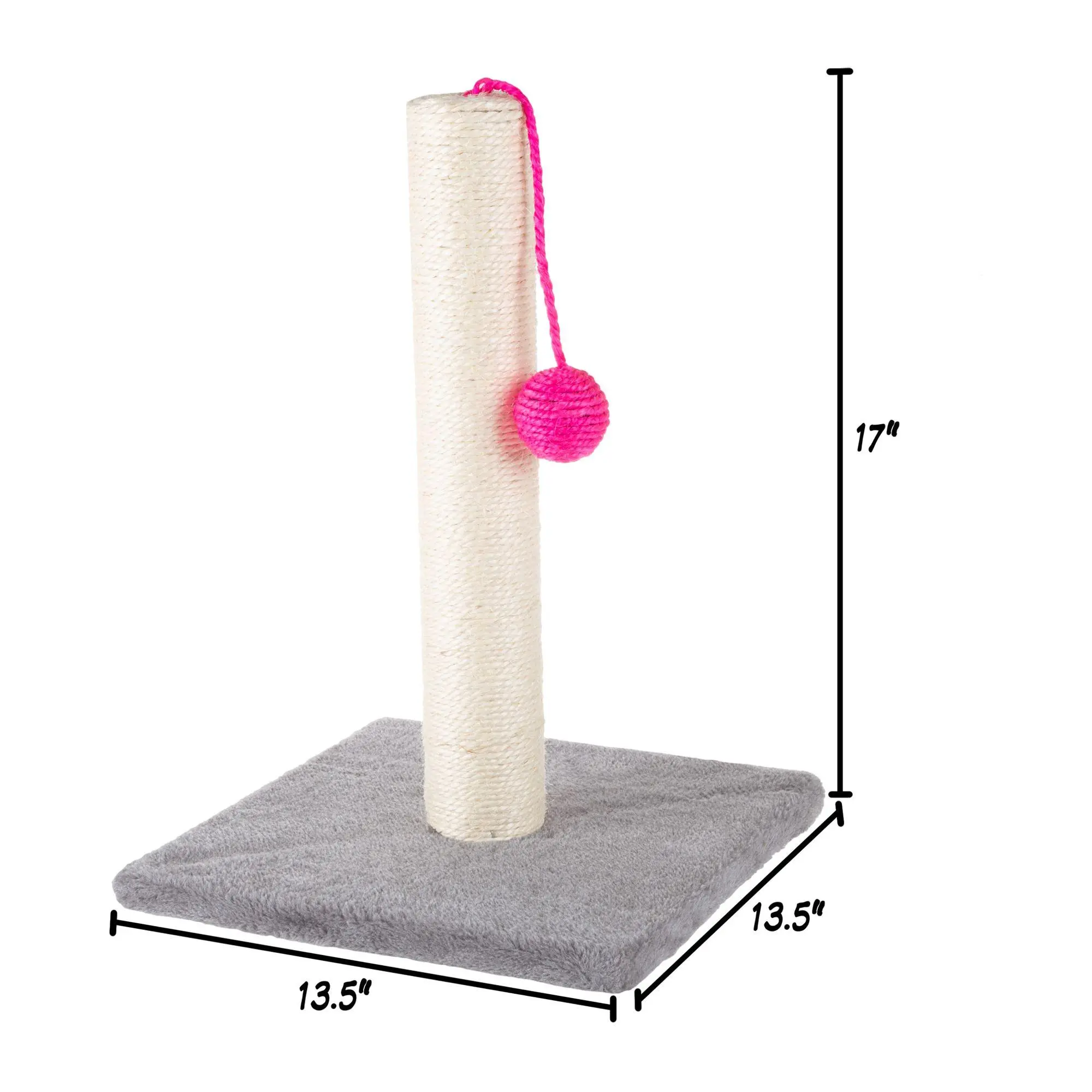 Keep your cat active and entertained with this cat scratching post. This vertical scratcher features a sisal rope post, a bright pink hanging ball toy, and a carpeted square base, perfect for adult cats or kittens. Protect your furniture while promoting healthy claws for your feline friend. From Petmaker.