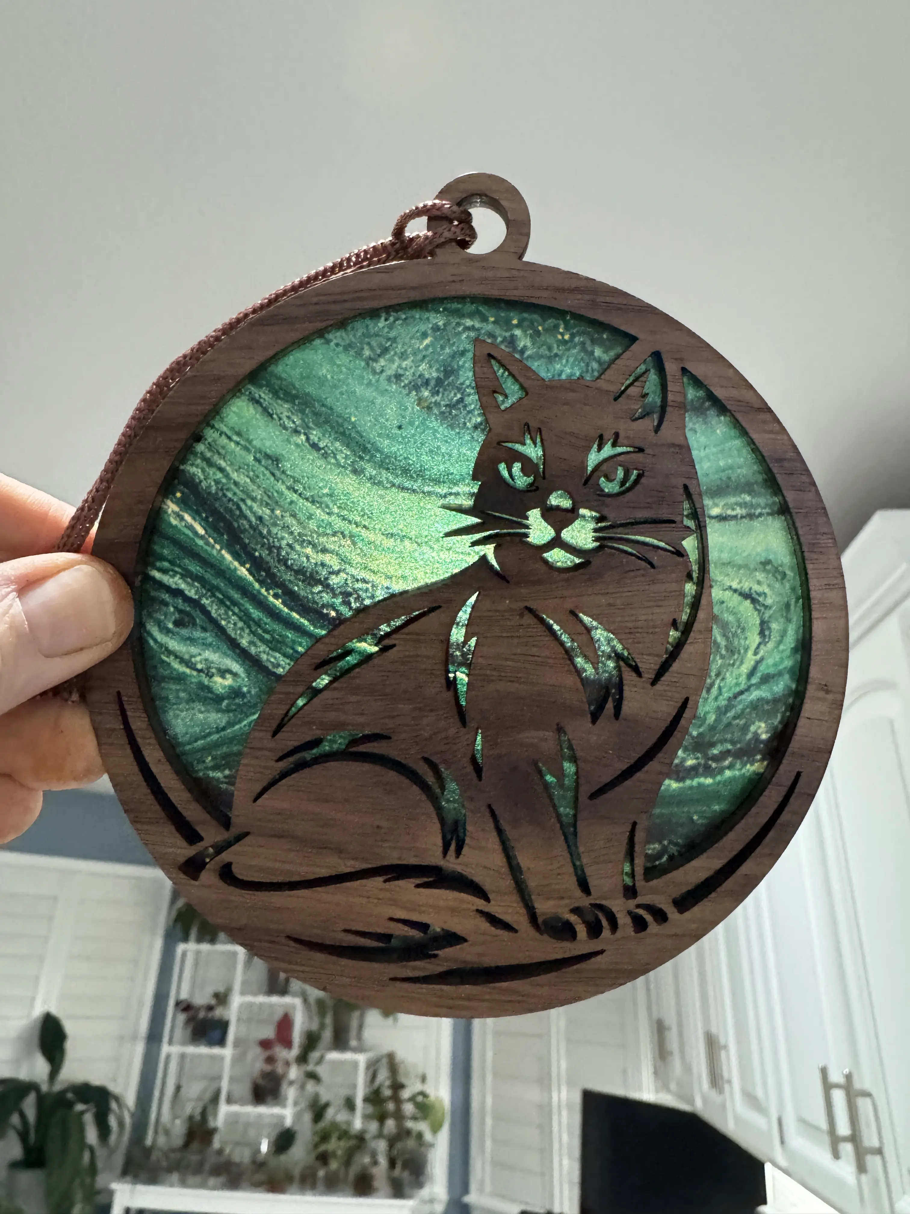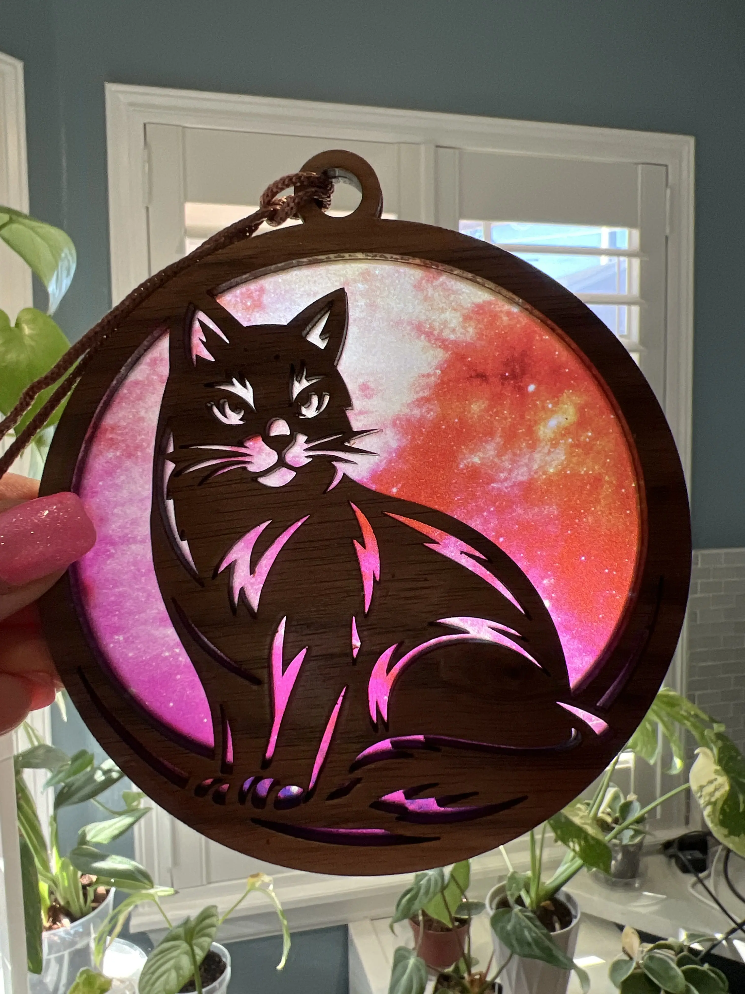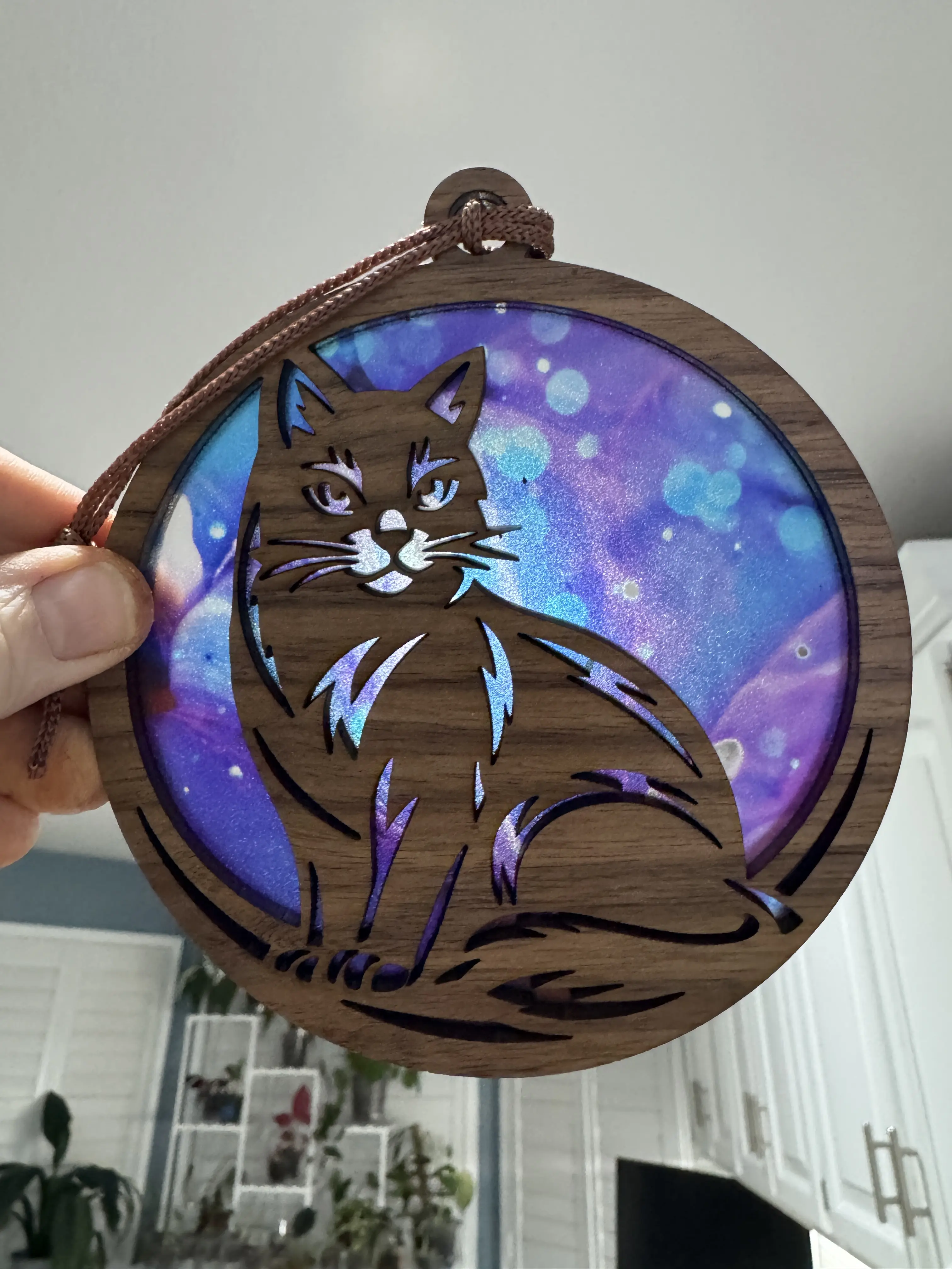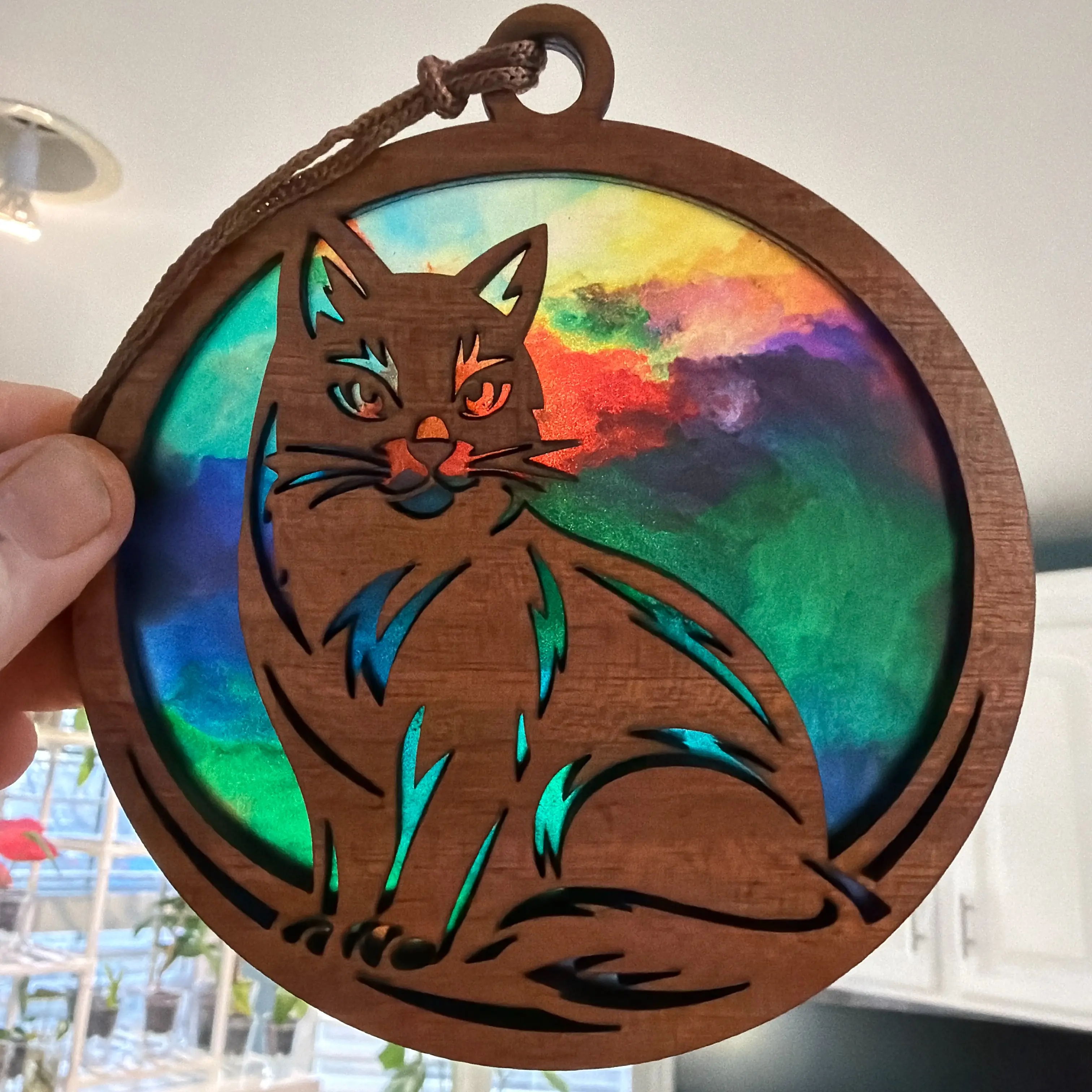 The Cat Suncatcher is a unique decorative piece designed to catch and reflect sunlight. It features a cat motif, adding charm to any space. Perfect for cat lovers or those who appreciate playful decor.