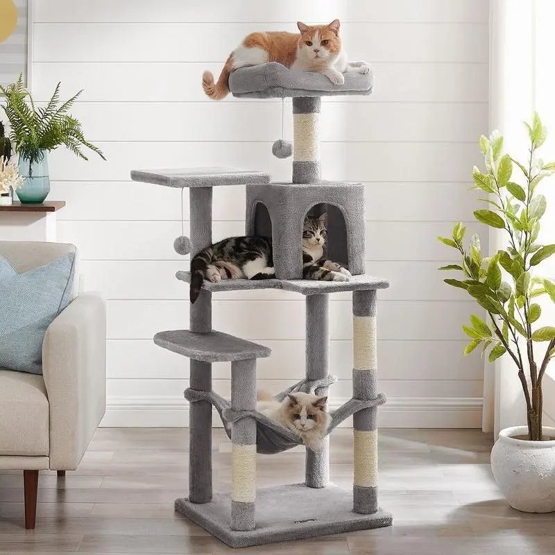 5. Feandrea 44.1-Inch Cat Tower for Indoor Cats, Multi-Level Cat Condo with 4 Scratching Posts, 2 Perches, Hammock, Cave