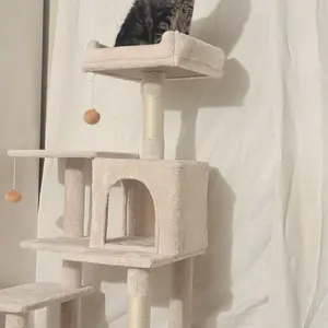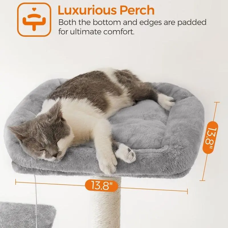 ·Soft and comfortable: The cat climbing tree is covered with soft plush for soothing coziness.