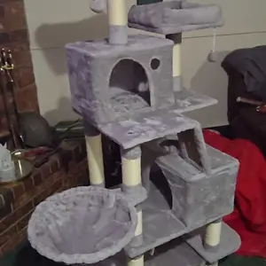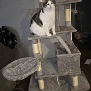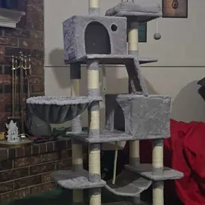 Lovely, super sturdy, cat tree. My cats love having a place to lay in the sun and be out of each of the dogs. I was amazed with the sturdiness of this piece!