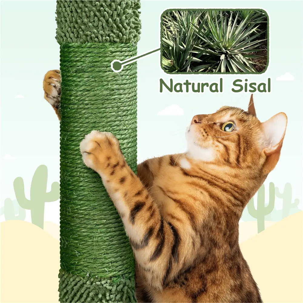 7. Ramp for Little Adventurers: This cactus-style cat tower is ideal for kittens too! A gentle ramp gives younger or less agile cats easy access to all the fun, so even the tiniest paws can join the adventure
