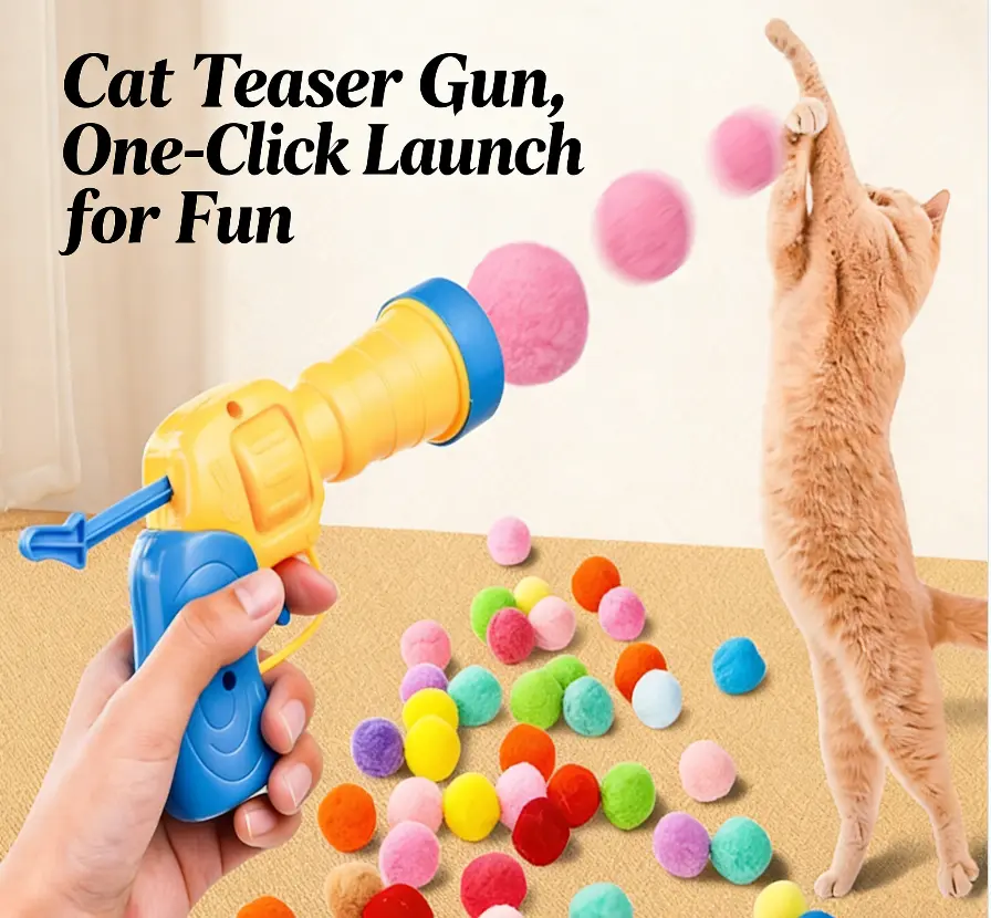 Satisfies Natural Instincts: Launcher gun delivers thrilling, interactive play that keeps cats endlessly entertained and engaged. Ultra-Soft & Versatile: Plush 3cm balls are soft for cuddling and can be attached to ceilings for solo play. Great for all life stages. Premium Durable Material: Made from tough, non-toxic fabric that resists destruction. Lightweight, quiet, and built to last. Promotes Positive Training: Helps kittens acclimate to handling and human interaction through fun, rewarding play sessions. Simple One-Button Launch: Easy to operate: pull lever, insert ball, press button, and launch! Instant fun with no setup required.