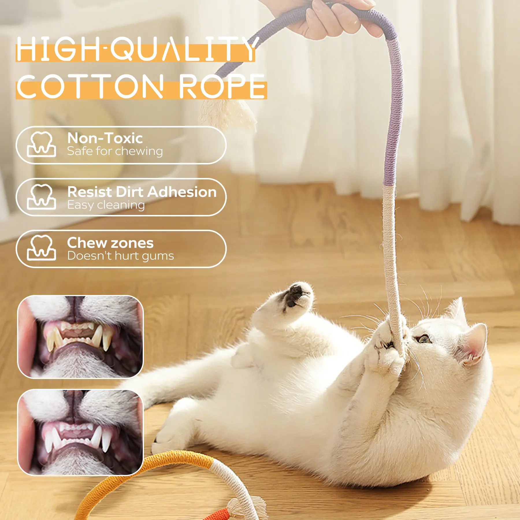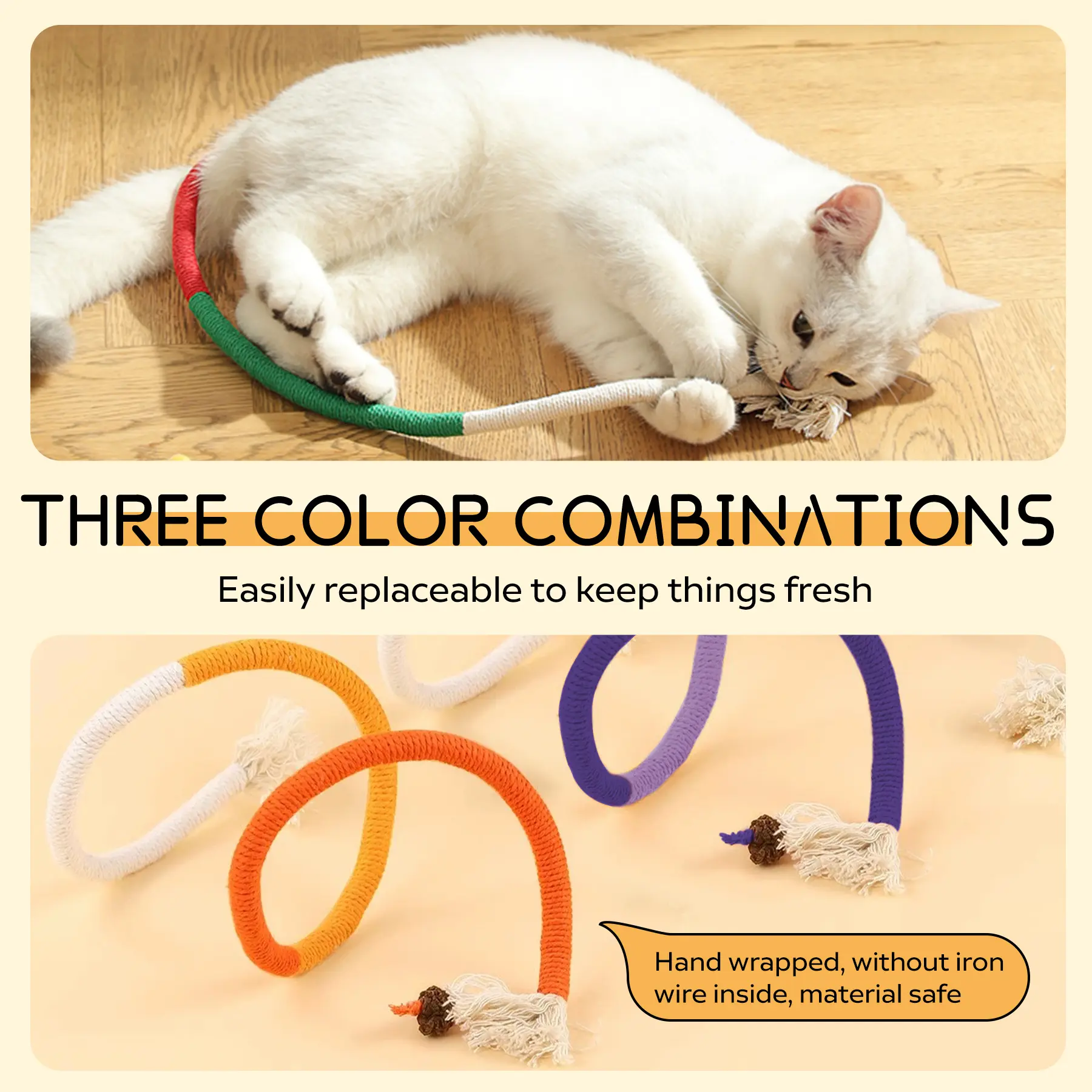 Ā·Safe and Durable Material: Our cat toys are made from high quality cotton rope, they do not contain iron wires inside, ensuring the safety of your cat. It is designed to withstand the bites and scratches of aggressive chewers, providing long-lasting durability.