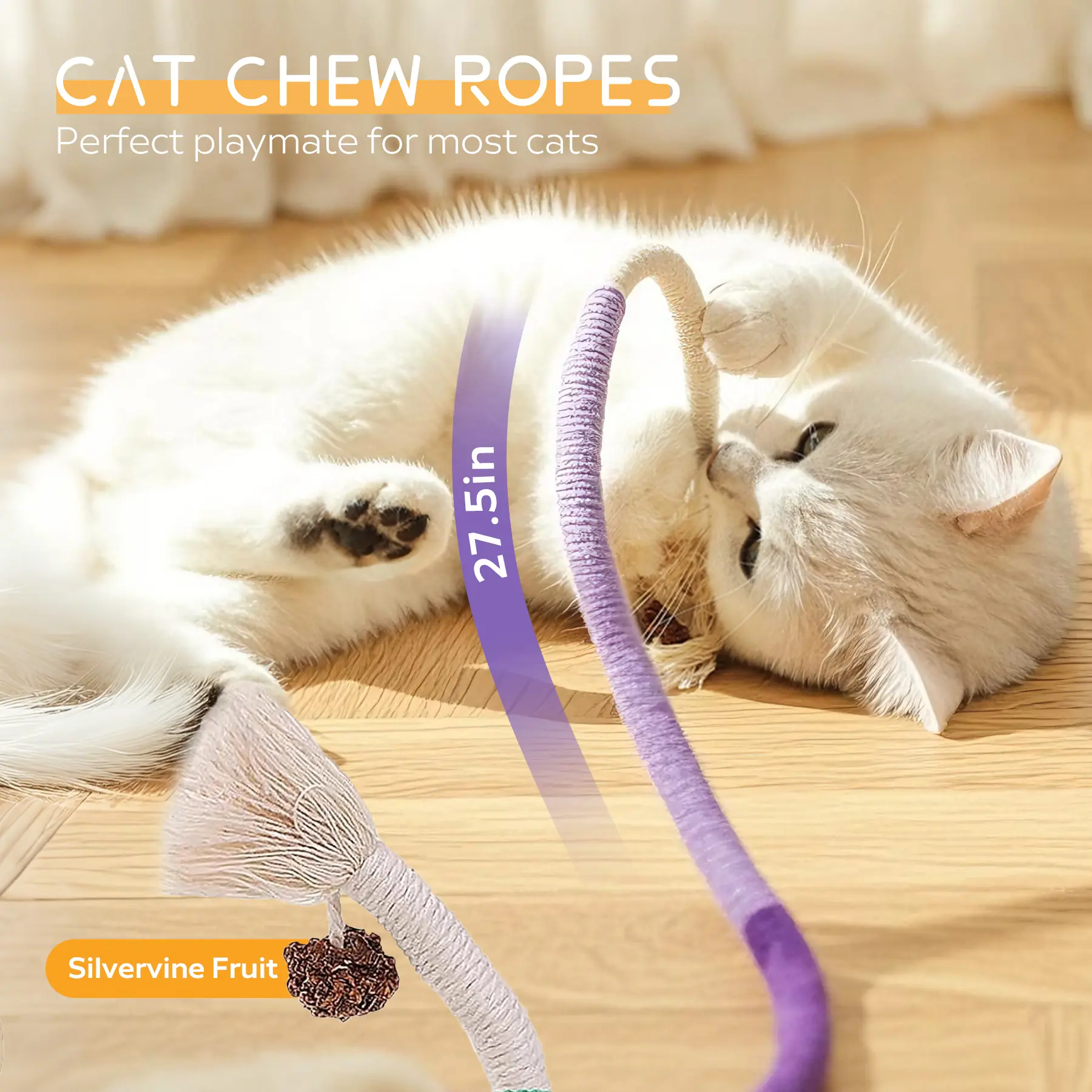Ā·Suitable for All Cats: With a length of 27.6 inches, our cat teething chew toy provides ample space for cats of all ages to play, exercise, and release energy. It is suitable for kittens, adult cats, and even senior cats, catering to their different stages of life.