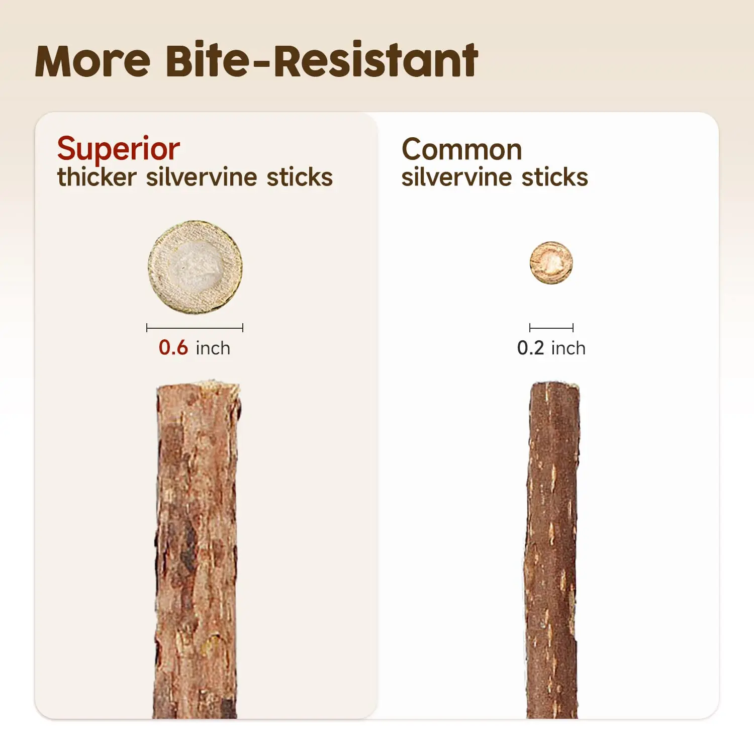 Guaranteed 100% Natural: Our silvervine sticks are made from 100% natural silvervine sticks, raffia, sisal rope and gall fruit (fruit of silvervine). Please rest assured when giving it to cats because they are absolutely safe for cats to chew and bite.