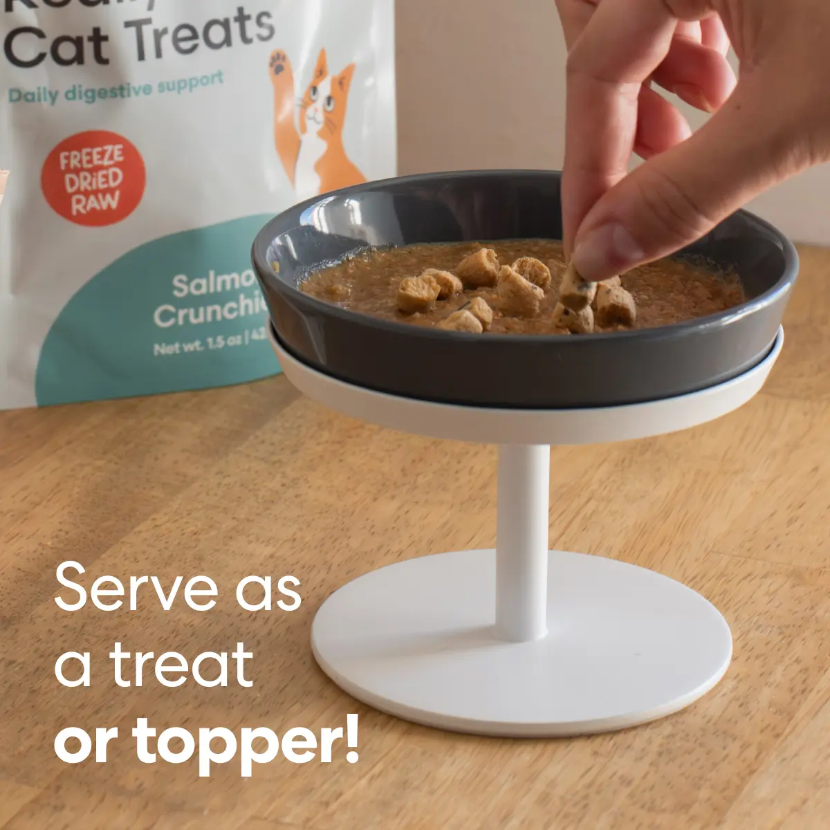 Crafted by cat nutrition experts, these daily snacks support gut health with wild-caught salmon and a freeze-dried, crunchy texture cats crave.