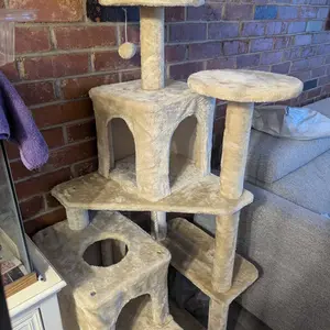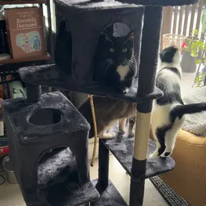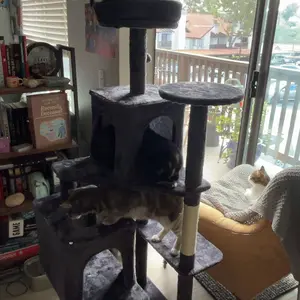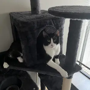 Excellent cat tower! Easy, self explanatory instructions & assembly. Excellent size & more climbing/play options. Showing comparisons to a store bought one that I got years ago for roughly $50 on sale. My big boy already resting at the top! I love the product even more because he loves it. 🐈⬛🖤