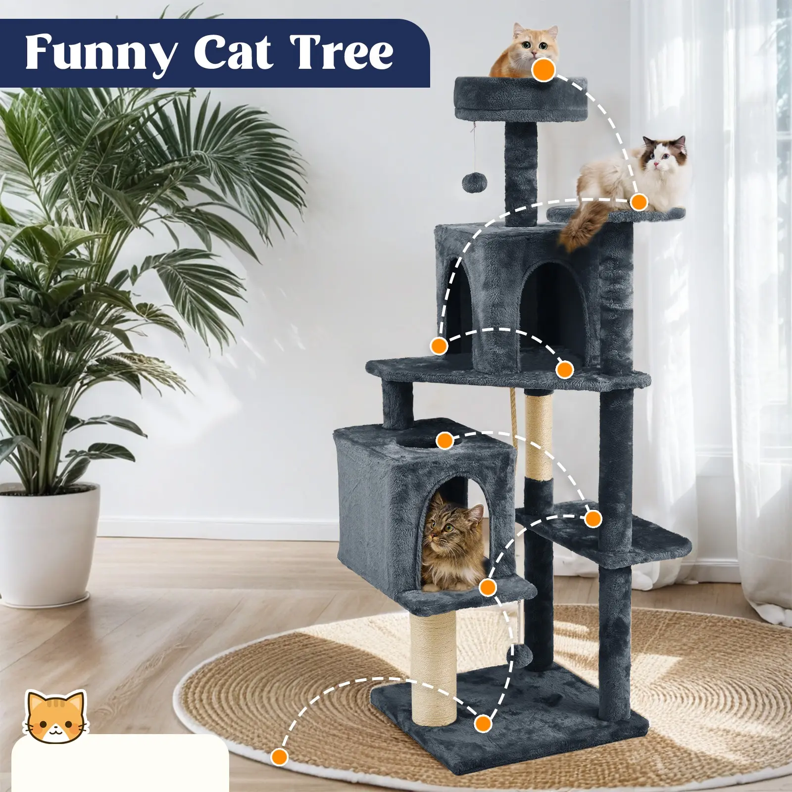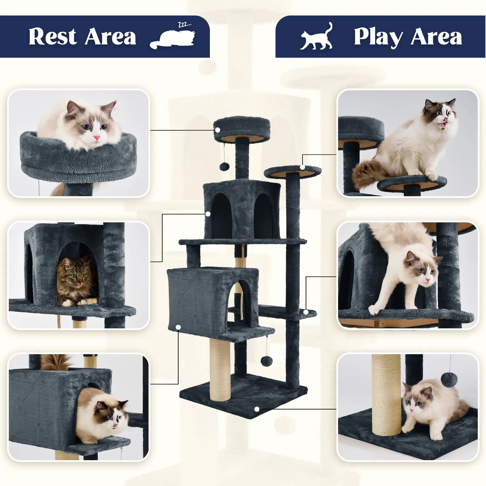 [Huge Versatile Fun Center]: Your cats can overlook the world on a 58" high platform, play around in two warm condos large enough, our versatile cat tree meets all the life needs of your kittens. Spoil your cats our huge cat tree!
