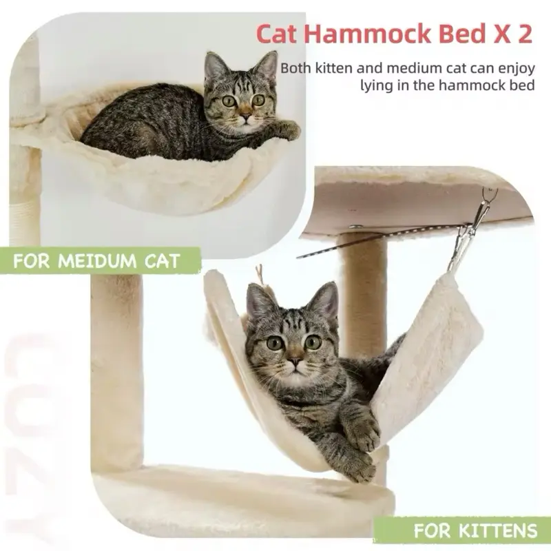 ✔ Cozy Condo & Hammock: Provides a comfortable retreat for naps and relaxation.