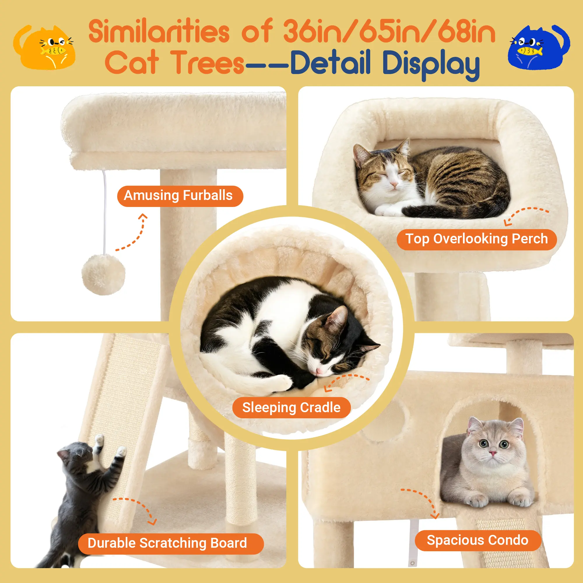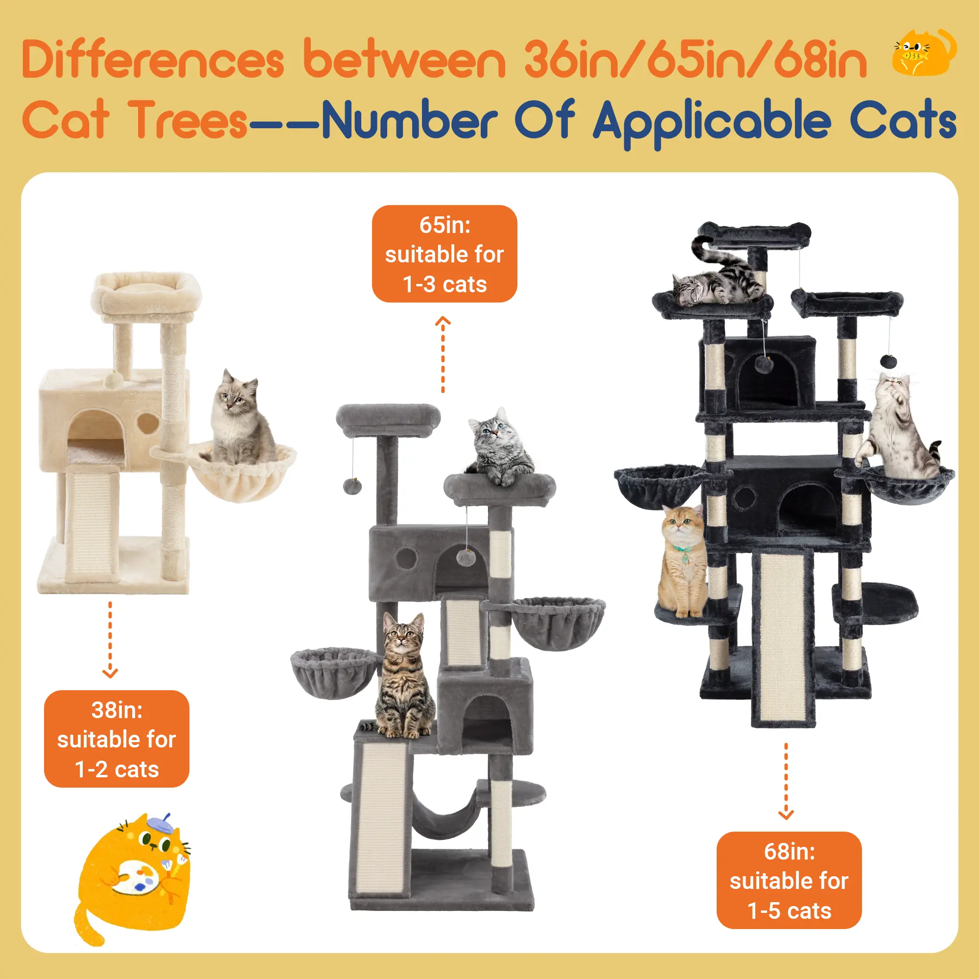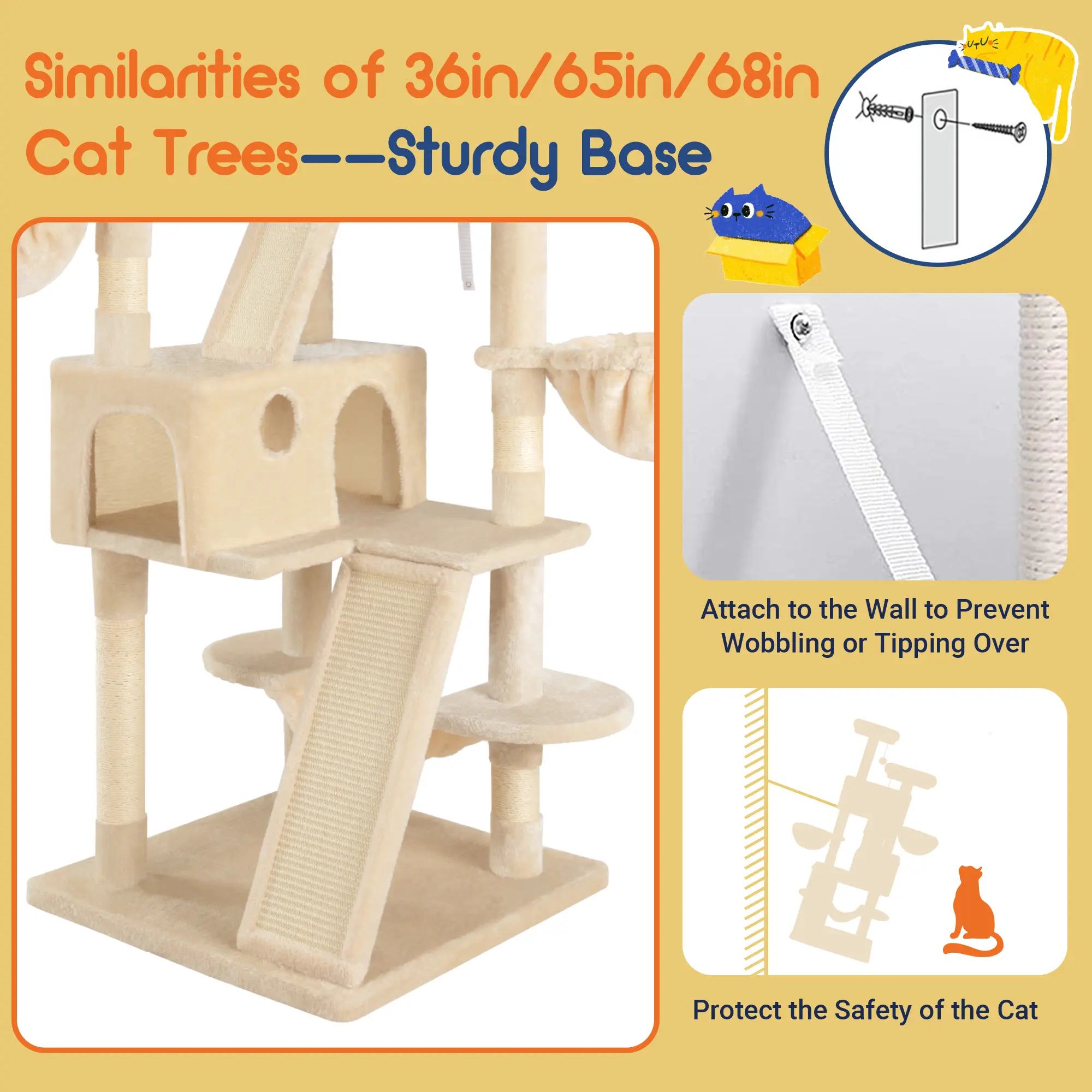 Very large and sturdy, set up was simple and the manual walks you through it ! As i was putting it together my kitty already hopped in. Great tree for multiple, larger cats !