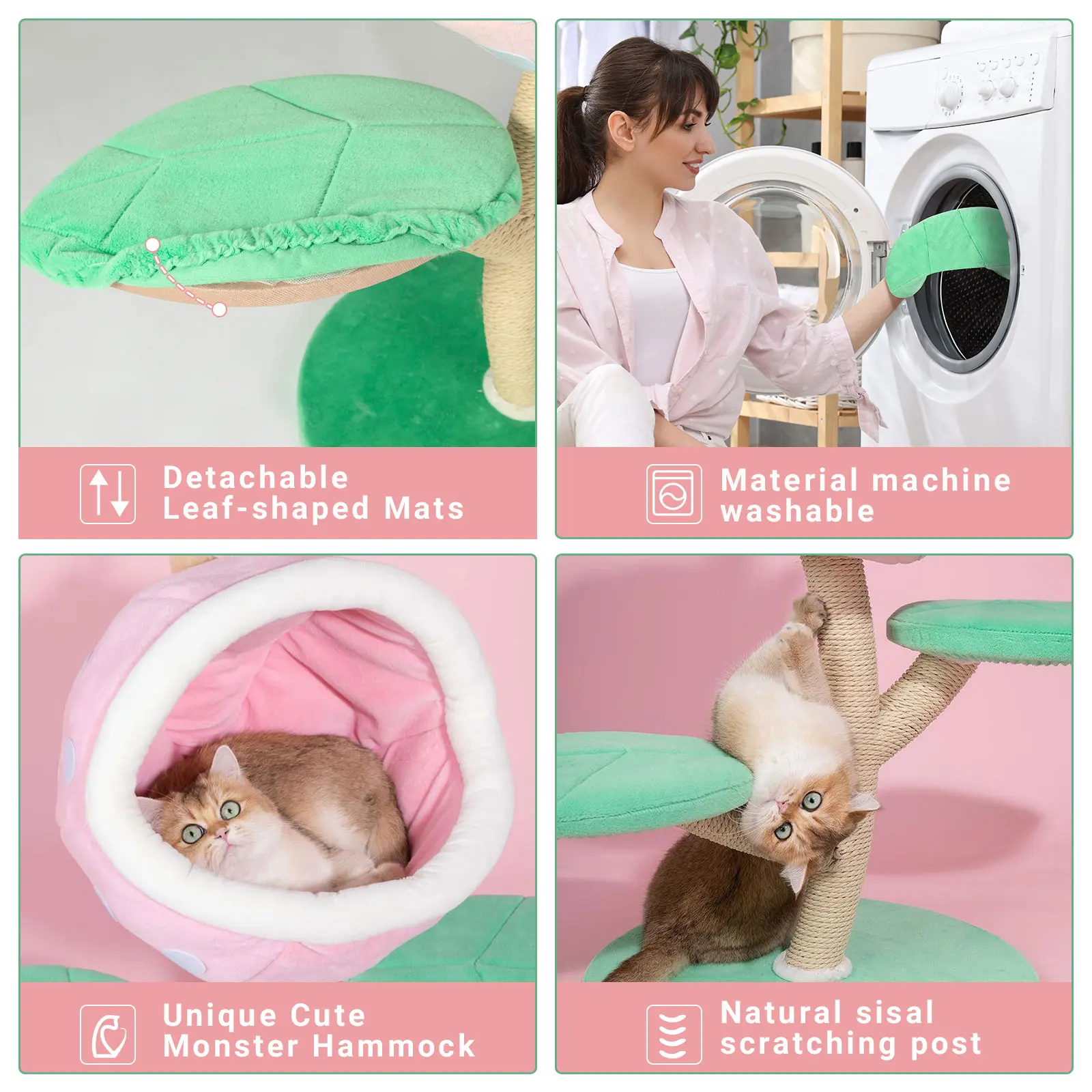 My cats just love this and it’s cute too! They love the scratching post and the leaves to sit on. It’s worth it.