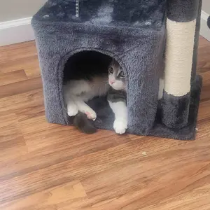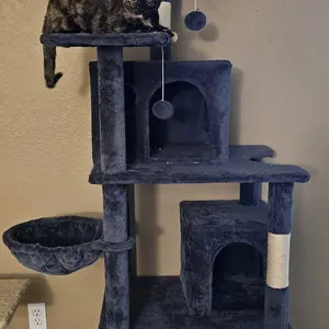 âą Cats' Cozy Haven: The cat tower features 2 spacious cat condos, 3 top perches, and 2 hammocks, providing a private and secure resting environment. There are multiple platforms for cats to freely choose where to play and rest. Soft plush surfaces are gentle on cats' skin and claws, ensuring a comfortable lounging experience.