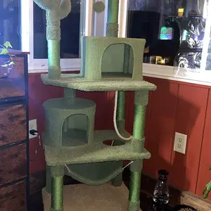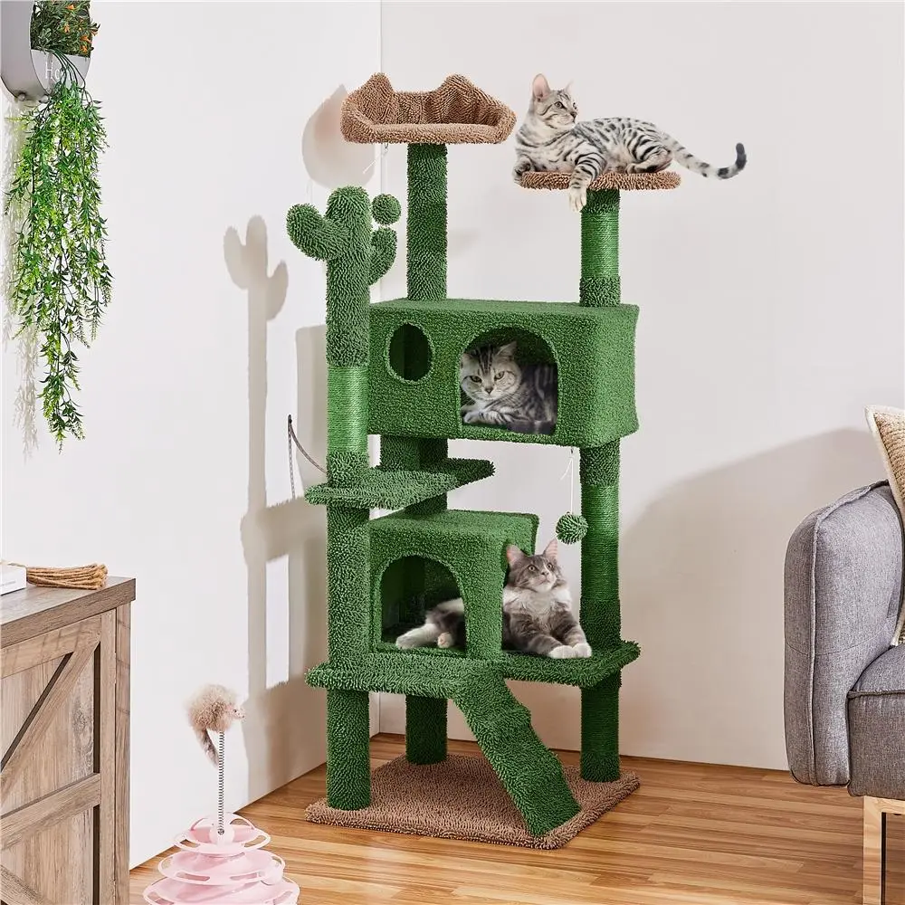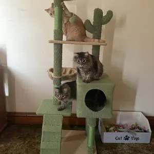 Hey there! Check out our amazing new cat tree! It's inspired by stunning desert scenery with vibrant green, yellow and brown hues, plus adorable cactus stem details. Add a playful twist to your home with our cactus-shaped cat tree, available in 10 sizes from 37” to 68” to suit different spaces and cat preferences. Perfect for multi-cat households, this tower has everything your cute friends need—cozy condos, a comfy perch, a round platform, a ramp, and even two hanging balls! Ideal for scratching, climbing, and jumping, your cats will adore it, and you'll love seeing them happy and secure!