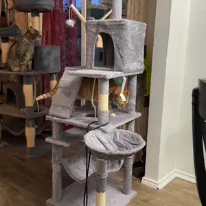 Feline Scratch Posts: Cats require a dedicated scratching surface to fulfill their natural urges; This cat tree features sisal-wrapped posts, providing the ideal scratch place to keep your cats content and protect your furniture.