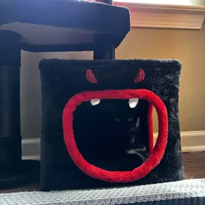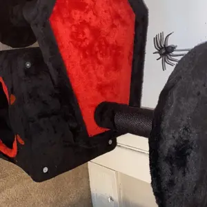 Thoughtful Details: The Halloween cat bed is distinguished by its haunting and darkly captivating features, such as a bed intricately crafted in the shape of a coffin, dangling spiderweb playthings for added intrigue, and a a large demon cat condo that beckons your feline friend into a realm of mystery and allure