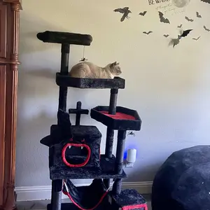 my cats love it & it goes so well w my spooky home! they were starting to get bigger and hang off the sides of their old walmart one but this new one is perfect and they have so much room !!