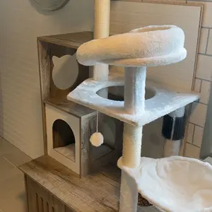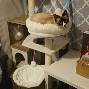 My kitties love it, and the cabinet for their litter box is super convenient. Putting it together was slightly difficult as some pieces didn’t perfectly fit together, and some holes were not fully drilled and I had to do it myself, but it still only took an hour to assemble alone.