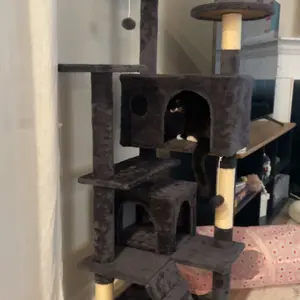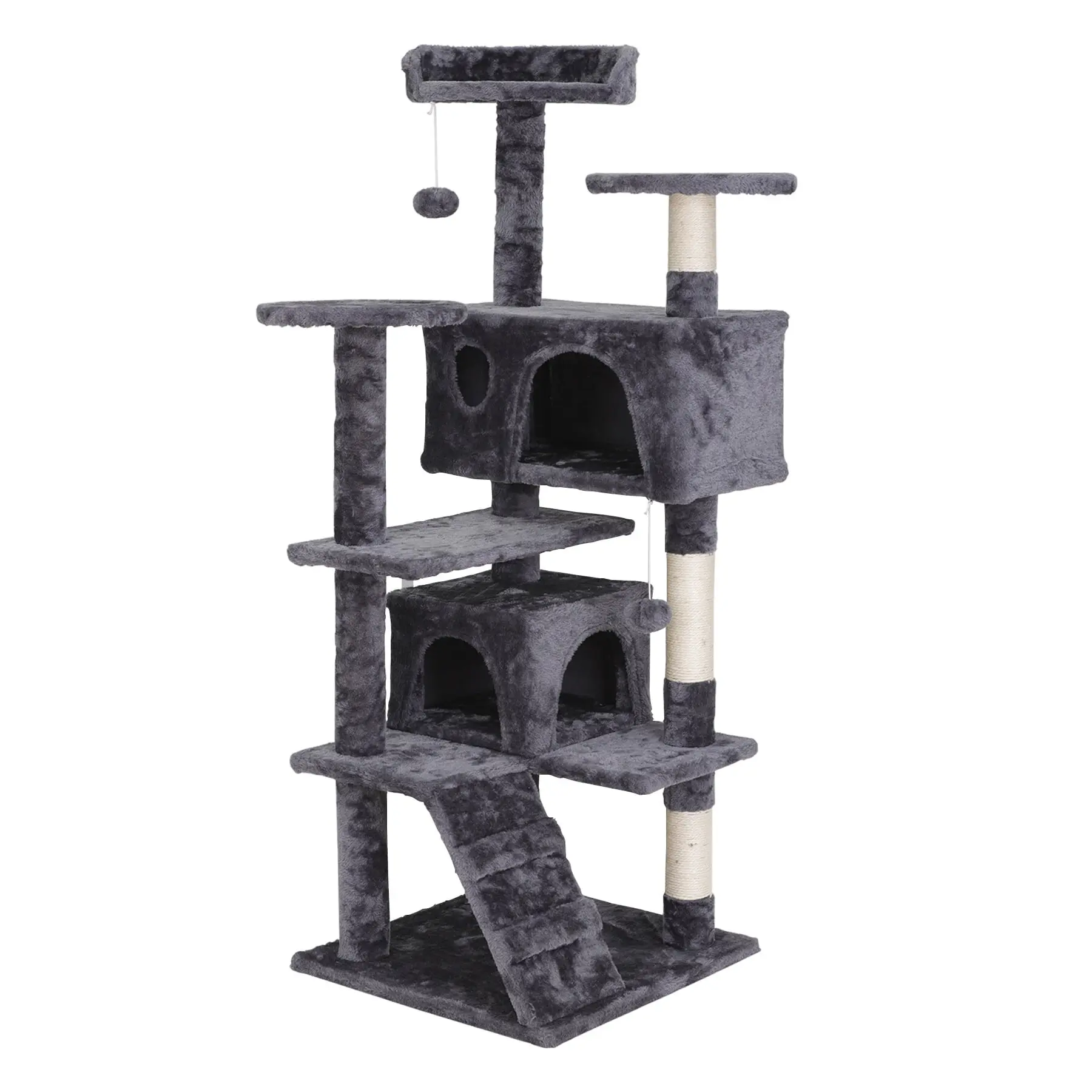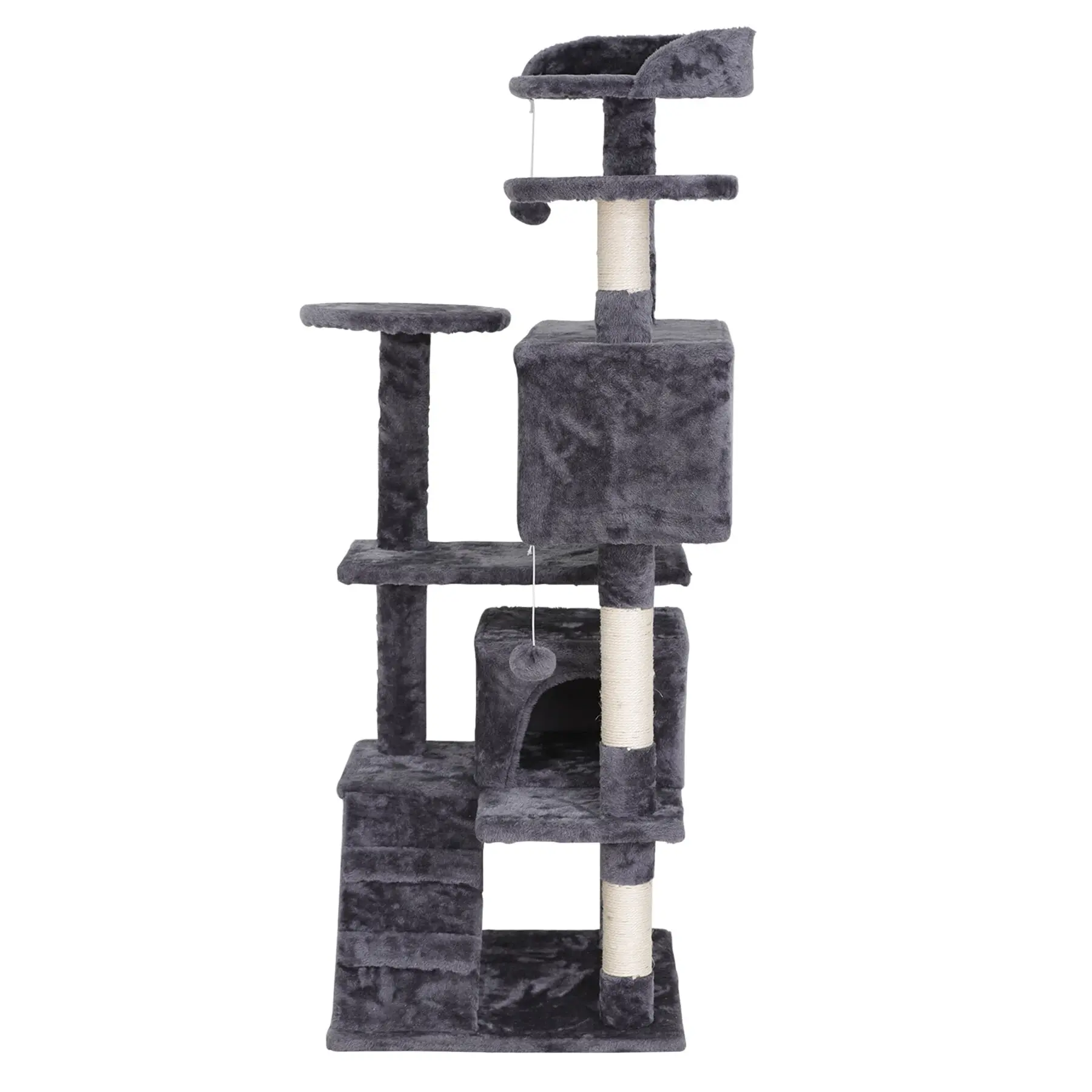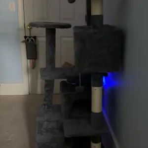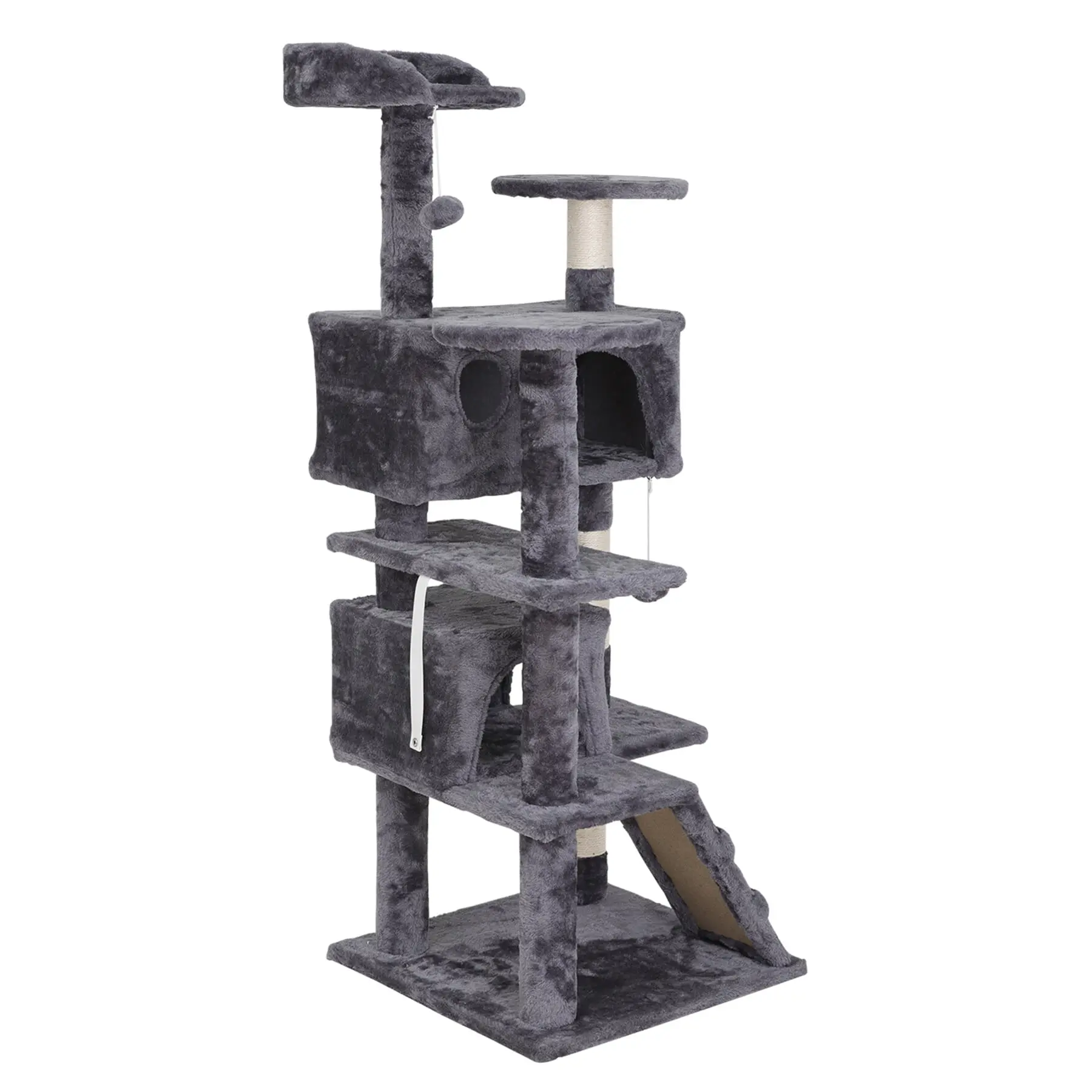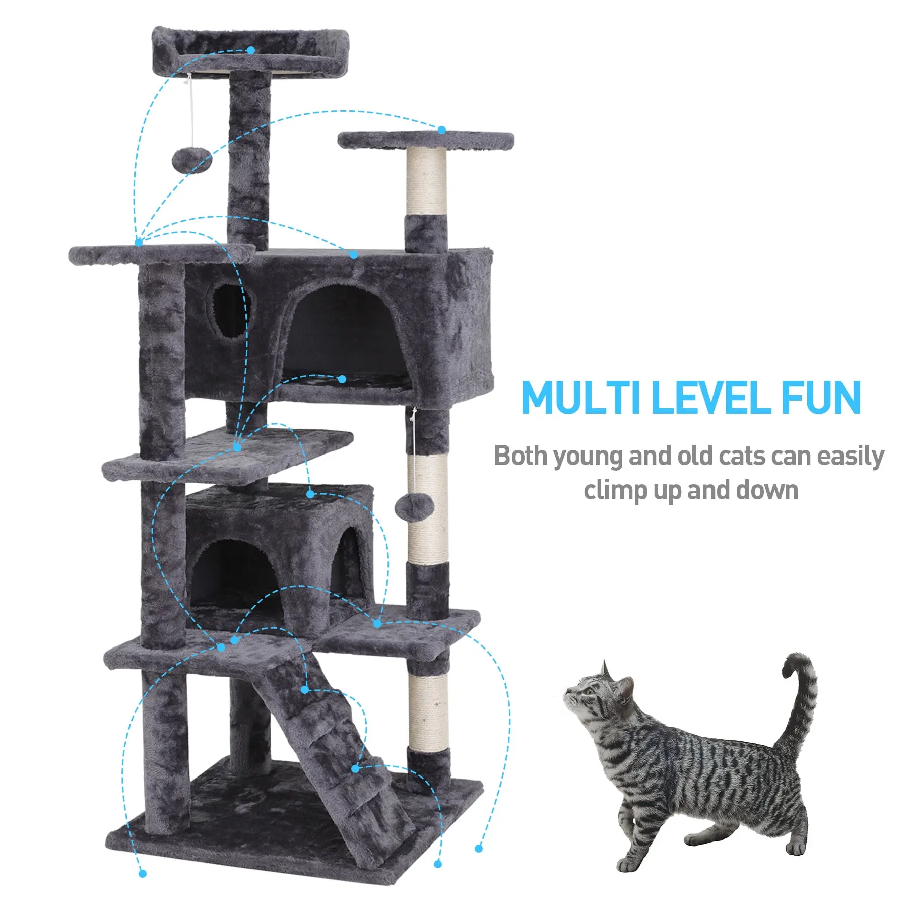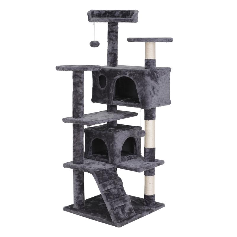 The ladder provides plenty of space for your cats to climb up and down and adds an extra element of fun. Your frisky cats can jump from perch to perch and climb to the top of the lookout tower. Dangling ball and rope toys offer a fun-filled, stimulating playtime.