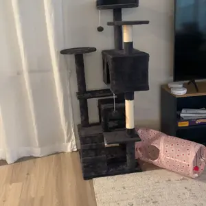 Multiple scratching posts are wrapped in natural sisal rope to hold up to daily scratching with one or more cats. Scratching ramp connects at two points to increase stability as well as prevent your cats from scratching your furniture.